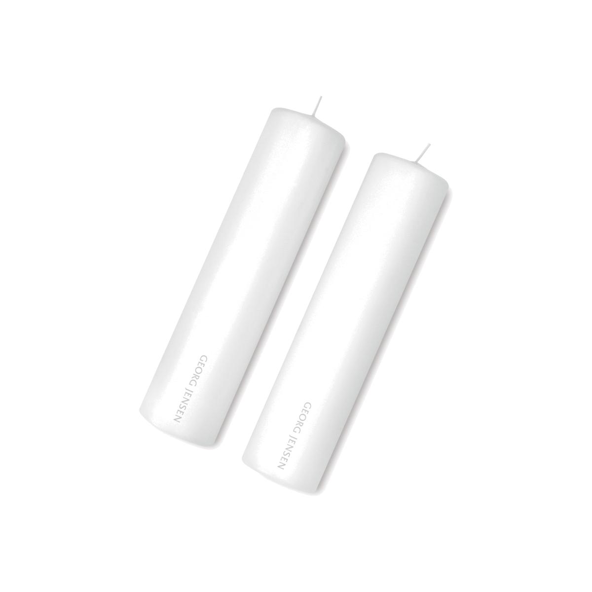 Georg Jensen candle Ø 6 cm is a crispy white candle with a grey text written on it. The candle is suitable for larger candleholders like the Cobra candleholder floor and the Copenhagen candlestick from the same brand. The candle is made with high quality and creates a soft, cozy light.