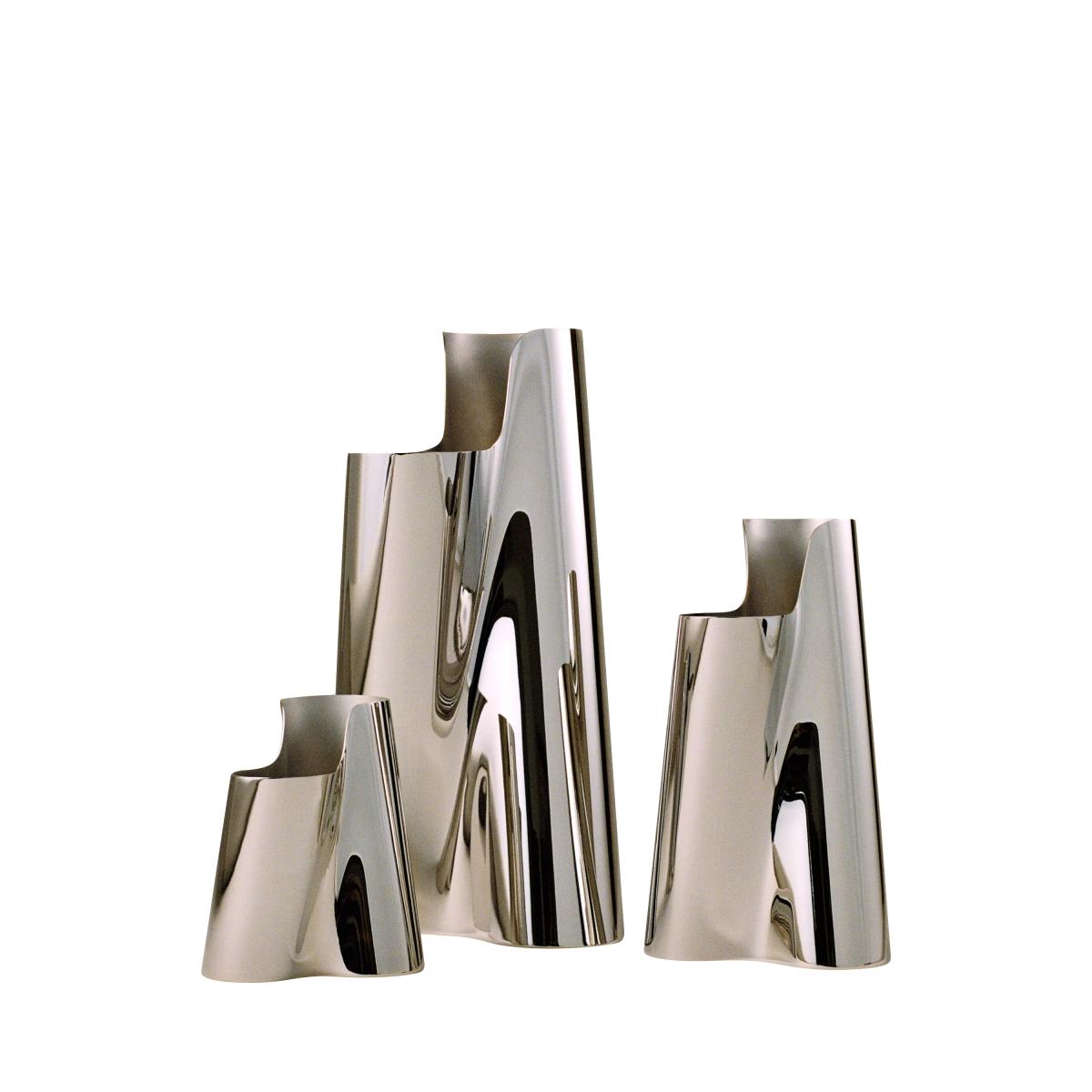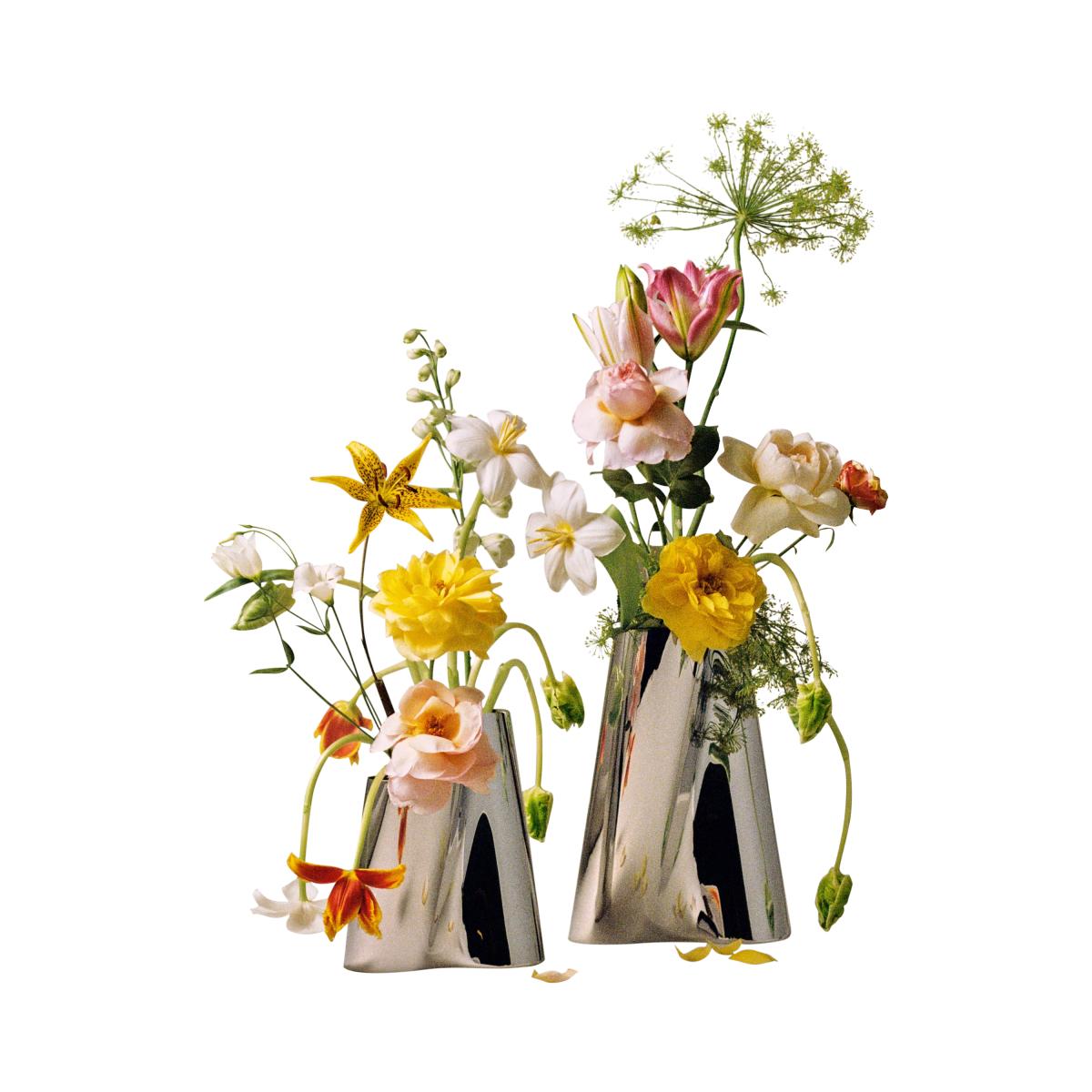 This sculptural vase is the creation of Danish architect and designer Anne Boysen. Crafted from hand-polished stainless steel, its elegant form features varying heights and angles that encourage creative floral arrangements. Boysen's vision was to design a piece that supports the entire lifespan of a flower, and the vase's dynamic structure ensures that any arrangement looks neat as the flowers change shape and form over time.