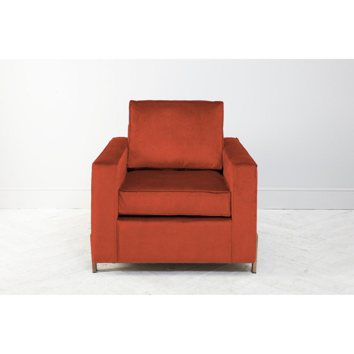 Sit back and enjoy comfort hand in hand with our George armchair. This angular armchair has a solid hardwood frame and a golden metal base that lifts its generous seat, with plump cushions and piping details for an exquisite look and feel. Available in over a hundred fabrics to choose from, each George is made to order by hand exclusively for you, and as such, will become the crown jewel of your home.