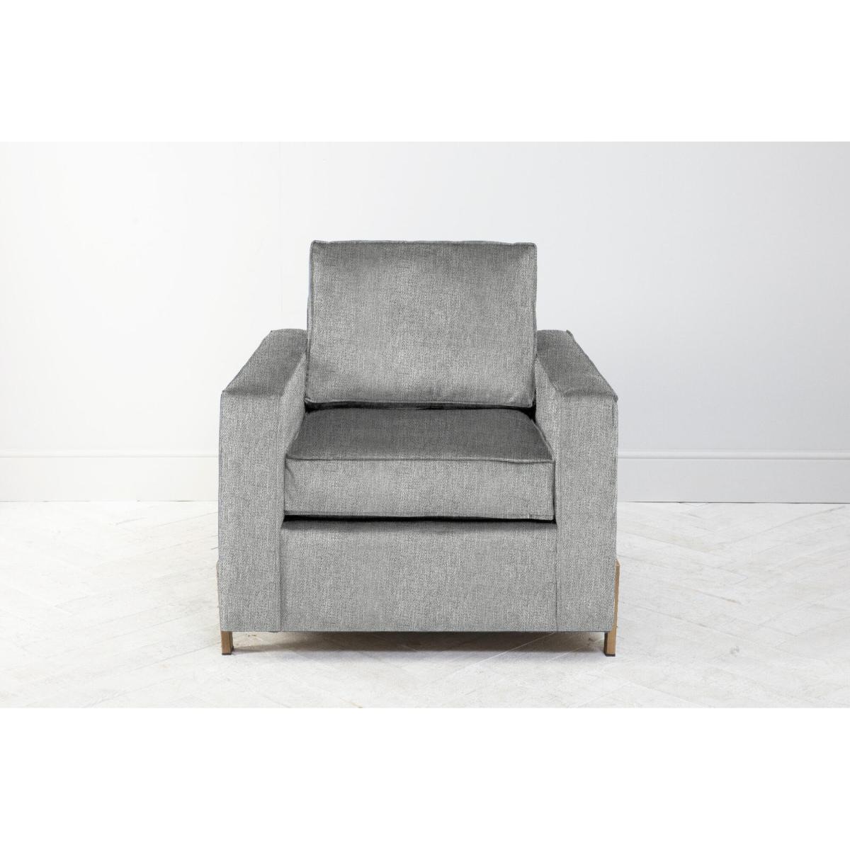 Sit back and enjoy comfort hand in hand with our George armchair. This angular armchair has a solid hardwood frame and a golden metal base that lifts its generous seat, with plump cushions and piping details for an exquisite look and feel. Available in over a hundred fabrics to choose from, each George is made to order by hand exclusively for you, and as such, will become the crown jewel of your home.