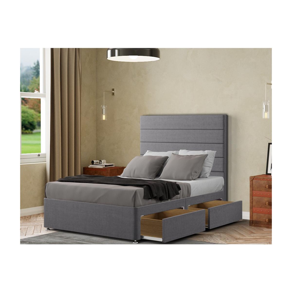 Introducing the George Divan Bed - Elevate Your Bedroom with British Craftsmanship. Crafted in the UK The George Divan Bed is a testament to British craftsmanship, meticulously designed and built to ensure long-lasting quality. Impeccable Design Elevate your bedroom with a floor-standing 54-inch headboard, exuding sophistication and adding a touch of luxury to your space. Customized for Your Style Express your unique taste with a range of colors and fabric choices. The George Divan Bed offers various options to seamlessly match your decor. Available in All Sizes Whether you need a single, small double, double, king, or super king size, we have the perfect bed ready and waiting to fit your space. Mattress Not Included Designed to pair seamlessly with your preferred mattress, the George Divan Bed allows you to create a personalized sleep sanctuary. Premium Quality Crafted with top-tier materials, this divan bed ensures durability and comfort, promising years of restful nights. Elevate your bedroom with the George Divan Bed and experience the perfect blend of style, functionality, and quality. Transform your space into a haven of comfort and sophistication,order yours today.