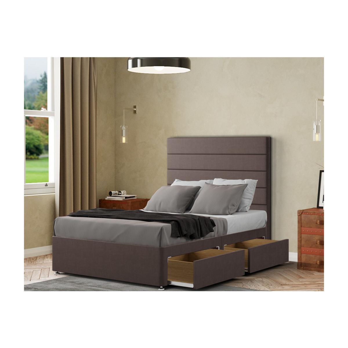 Introducing the George Divan Bed - Elevate Your Bedroom with British Craftsmanship. Crafted in the UK The George Divan Bed is a testament to British craftsmanship, meticulously designed and built to ensure long-lasting quality. Impeccable Design Elevate your bedroom with a floor-standing 54-inch headboard, exuding sophistication and adding a touch of luxury to your space. Customized for Your Style Express your unique taste with a range of colors and fabric choices. The George Divan Bed offers various options to seamlessly match your decor. Available in All Sizes Whether you need a single, small double, double, king, or super king size, we have the perfect bed ready and waiting to fit your space. Mattress Not Included Designed to pair seamlessly with your preferred mattress, the George Divan Bed allows you to create a personalized sleep sanctuary. Premium Quality Crafted with top-tier materials, this divan bed ensures durability and comfort, promising years of restful nights. Elevate your bedroom with the George Divan Bed and experience the perfect blend of style, functionality, and quality. Transform your space into a haven of comfort and sophistication,order yours today.