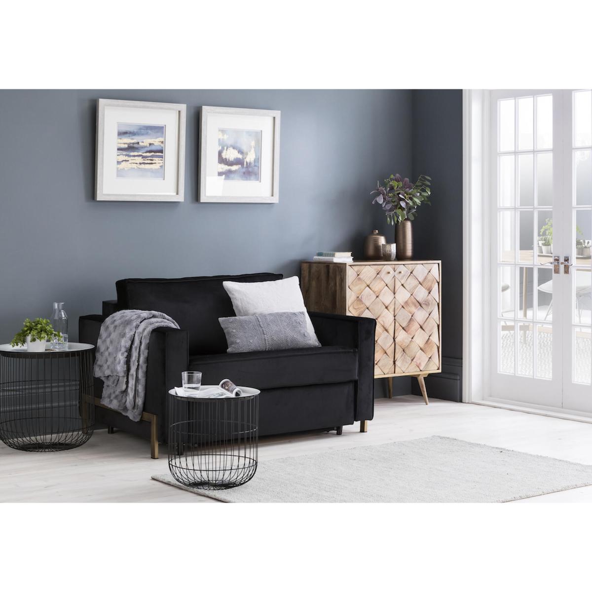 I love this old-school sofa bed for its versatility and colour. The juniper green fabric ensures it can be a statement piece in both contemporary and more traditional interiors, adding a splash of colour without overpowering the space. It works especially well in eclectic, boho, or modern minimalist interiors when paired with neutral tones or patterned textiles. Practical styling tips include layering with textured cushions or throws in contrasting shades to soften the look and add comfort. Its compact design makes it ideal for small living rooms or guest rooms, where functionality and style need to go hand in hand. Because it’s a sofa bed, it’s a smart choice for creating flexible living spaces that can adapt to different needs with minimal fuss.
