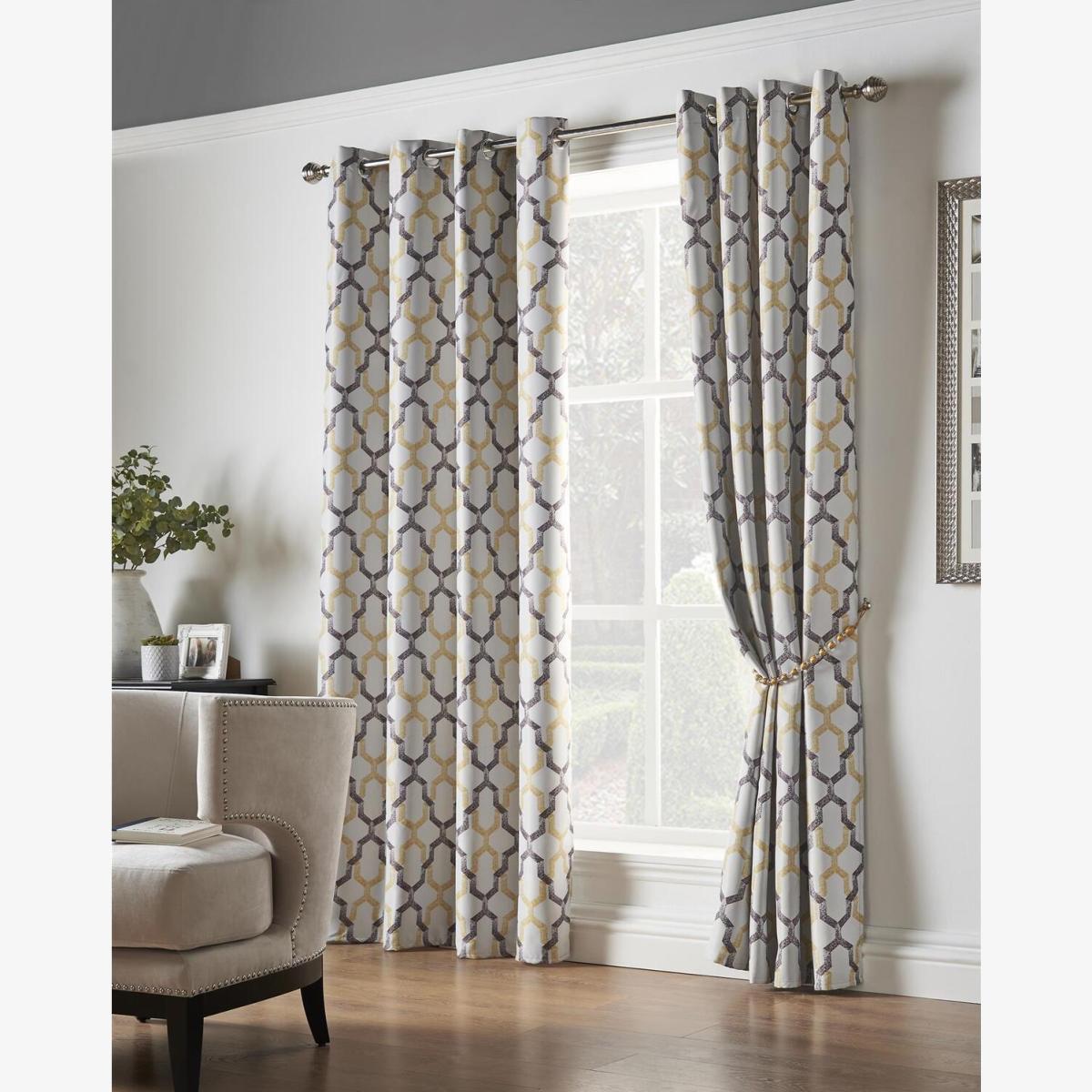 Printed curtains that will block out up to 95 percent of light. Designed with a triple weave fabric so do not require linings. Finished with an eyelet ring top heading. Soft draping fabric