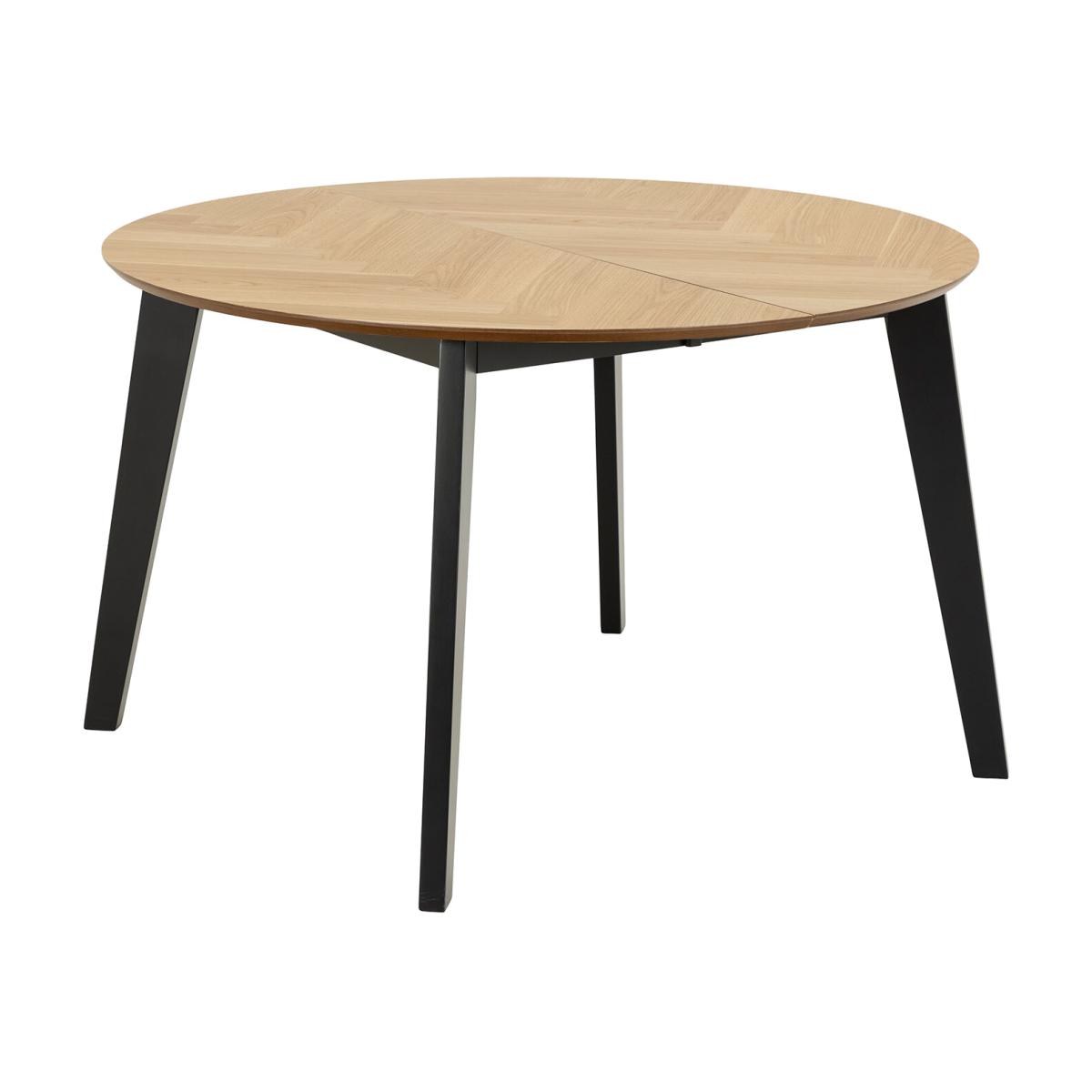 Invite timeless elegance into your dining room with this exquisite Georgetown Round Dining Table. The oak-effect top showcases a classic herringbone pattern, adding a touch of refined charm to any space. Resting on sturdy matt black legs, it offers a striking contrast that blends traditional and modern styles seamlessly. It creates a warm and welcoming atmosphere while serving as a sophisticated centrepiece.