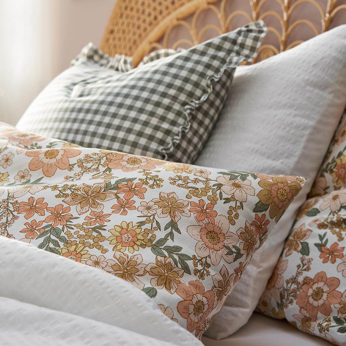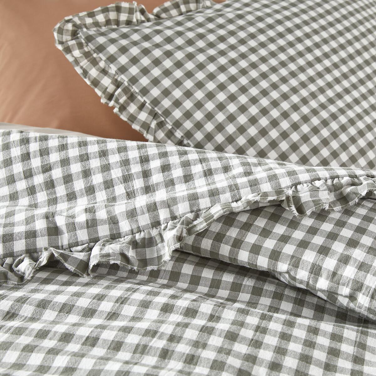Georgette offers a gingham print combined with the softness of slightly crumpled washed cotton. Created by La Redoute Interiors. The washed cotton has been delicately bleached during its manufacture. Soft, supple and comfortable, it softens over time. Its slightly wrinkled appearance is incredibly on-trend, and it does not require ironing. Product Details • 100% pre-washed cotton • Gingham check print on both sides • Padding 100% polyester, 150 g/m2 • Raw edge flounce finish. Match this item with the rest of the bedding in the range for a stylish bedroom. And you can mix and match it with different colours and styles from our other bedding ranges when you want to change things up and create your own unique look. Care Advice • Washable at 40°C • By washing your laundry at 30°C instead of 40°C, you limit energy consumption. Sizes • 65 x 65cm: Square cushion cover • OEKO-TEX® Standard 100. Standard 100 certification by OEKO-TEX® tests textile products for harmful substances via an independent, international label.