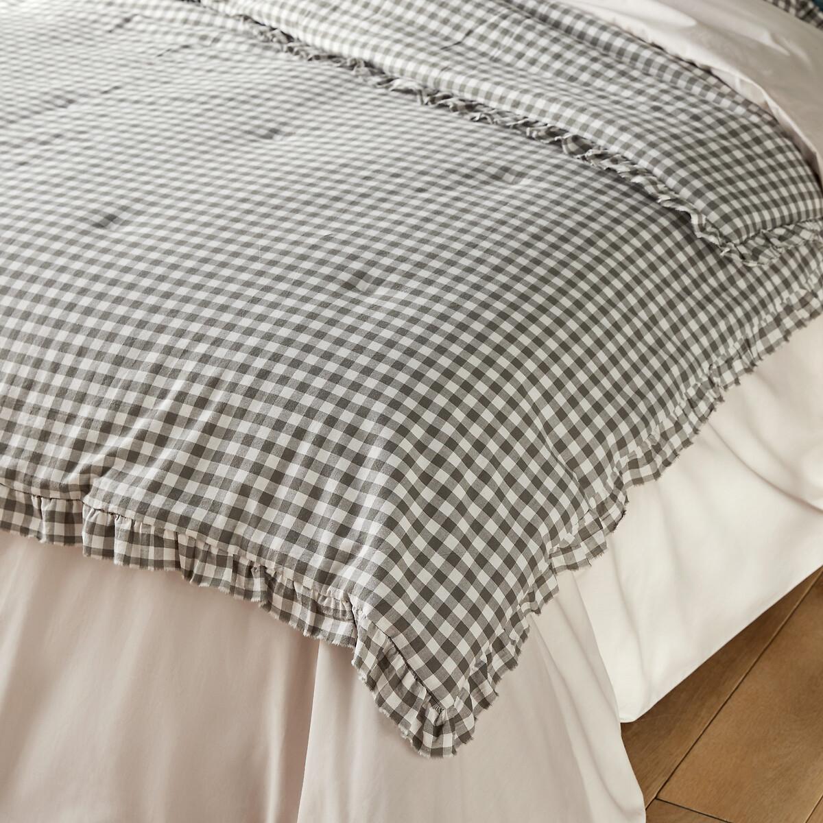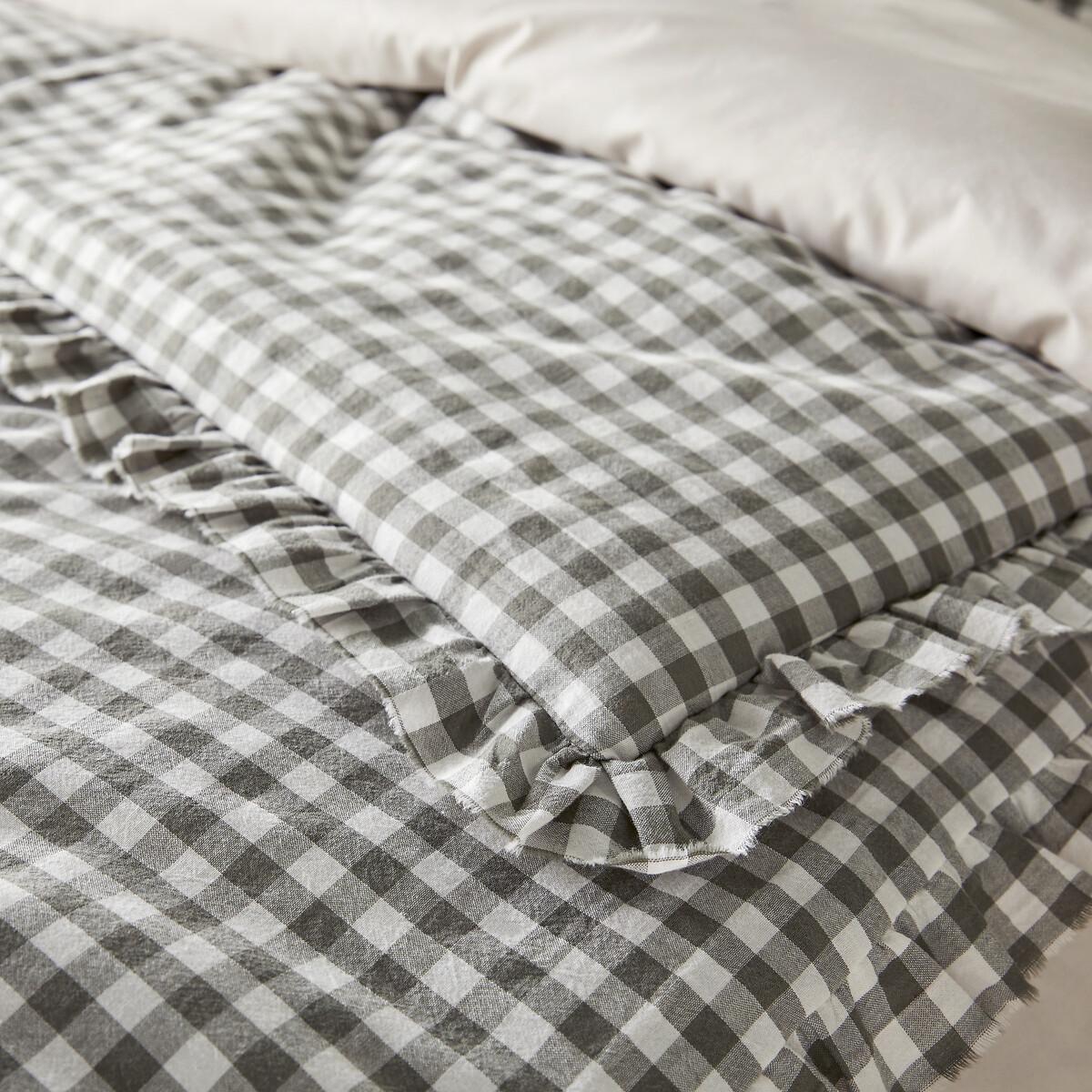 Georgette offers a gingham print combined with the softness of slightly crumpled washed cotton. Created by La Redoute Interiors. The washed cotton has been delicately bleached during its manufacture. Soft, supple and comfortable, it softens over time. Its slightly wrinkled appearance is incredibly on-trend, and it does not require ironing. Product Details • Cover: 100% cotton, washed cotton • Padding: 100% polyester (150 g/m²) • Gingham check print on both sides • Raw edge flounce finish. Care Advice • Washable at 40°C • By washing your laundry at 30°C instead of 40°C, you limit energy consumption • Safe to tumble dry. Sizes • 90 x 190cm • 150 x 150cm • OEKO-TEX® Standard 100. Standard 100 certification by OEKO-TEX® tests textile products for harmful substances via an independent, international label.