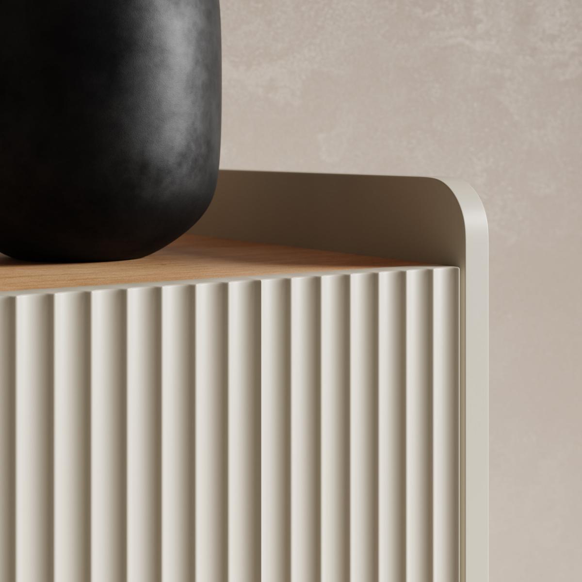 I’m a fan of this three-drawer chest for its clean lines and soft natural finish, which makes it a versatile base piece in both contemporary and Scandi-style rooms. The subtle vertical detailing on the drawers adds texture without overwhelming the space, and the slim brass legs lift it off the floor for an airy feel. It slots in neatly beside a bed as a stylishly practical bedside table or in an entrance hall to keep keys and mittens organised. Styling tip: top it with a simple mirror or framed print leaning against the wall, add a matte-black or ceramic vase with dried stems, and tuck a low tray in one corner for everyday bits and bobs.