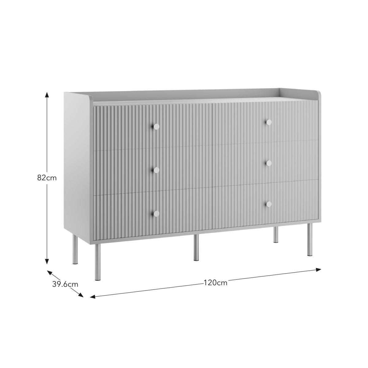 Equally glam and modern, our Georgi Wide 6 Drawer Chest draws the eye with its striking textured front set against a stylishly simple frame. This chest is finished with matte gold finish handles and legs for a truly contemporary luxe look.