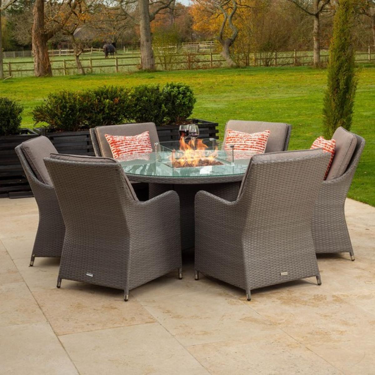 Georgia 6 Seat Round Rattan Furniture Gas Fire Pit Set 1.35m - Grey