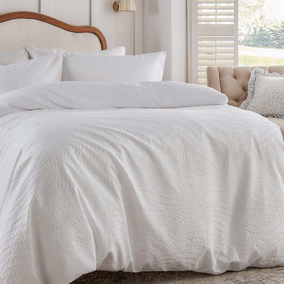 Elevate your bedroom with the Georgia Duvet Cover Set, a perfect blend of elegance and comfort. Showcasing heat-pressed detailing inspired by the natural world, its intricate design adds depth and sophistication to your space. Soft to the touch and effortlessly timeless, this set enhances your rooms aesthetic while providing a luxurious feel for restful nights. Thoughtfully crafted with durable, quality materials and finished with a secure button closure, it offers a harmonious balance of style and practicality, catering to those who value both beauty and function.
