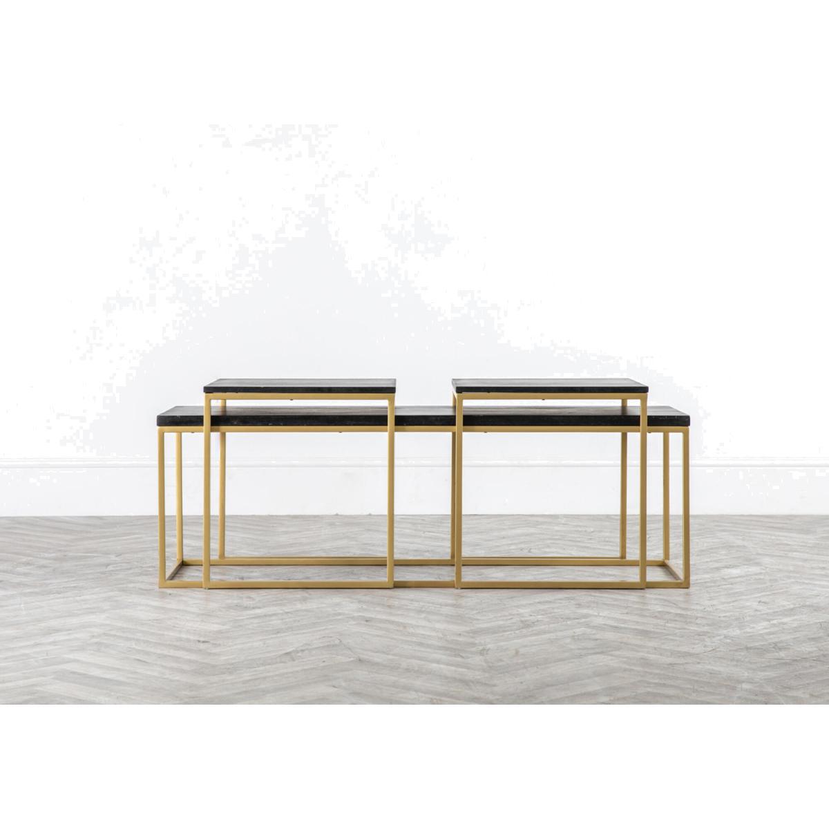 I love the Georgia nesting tables for their sleek, modern aesthetic and versatile design. The black tops paired with gold frames make them an excellent choice for contemporary or minimalist interiors, adding a touch of elegance without overwhelming the space. They work well as standalone pieces or nested together to create visual interest or extra surface area. Practical styling tips include layering with textured accessories like a woven tray or adding a few decorative books and small plants to soften the look. These tables are perfect for smaller living rooms, creating flexibility while maintaining a streamlined, stylish vibe.