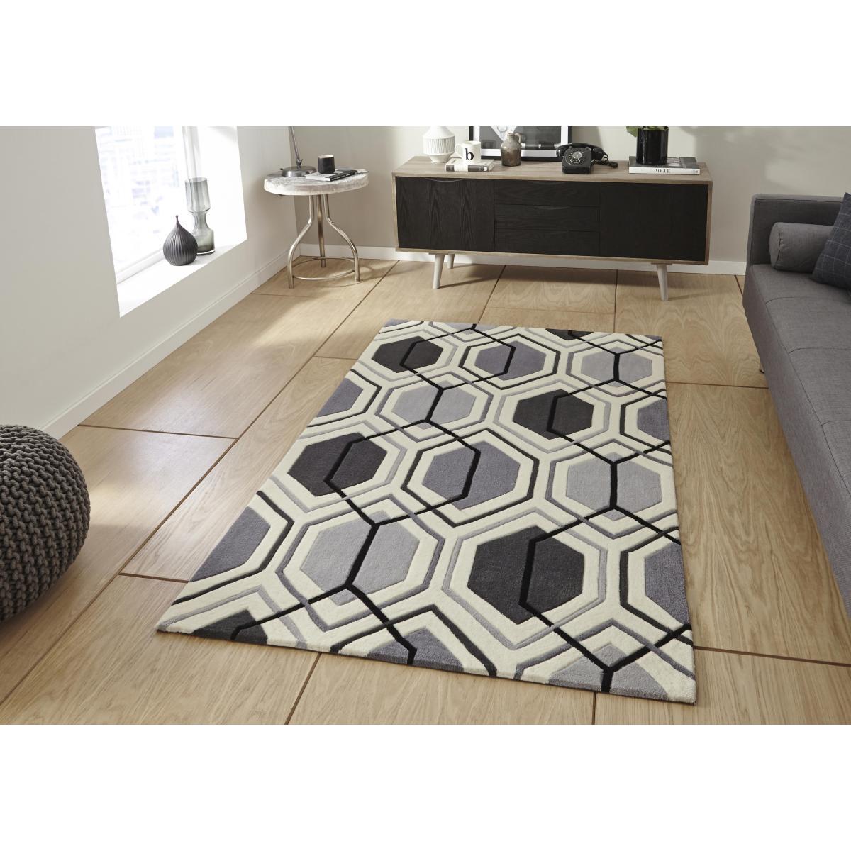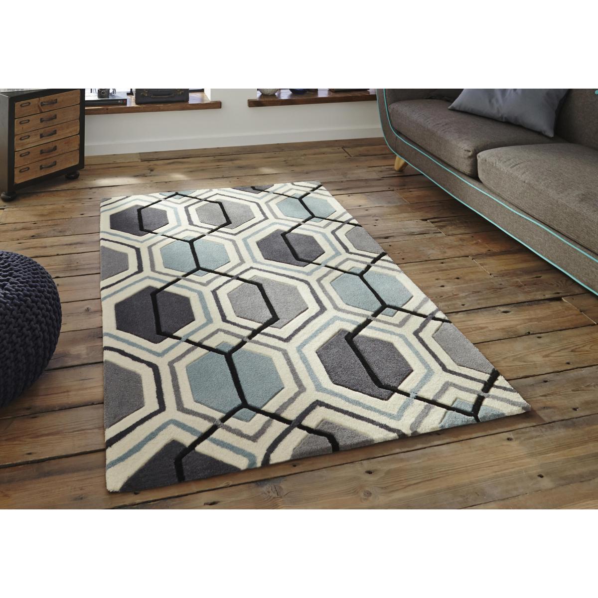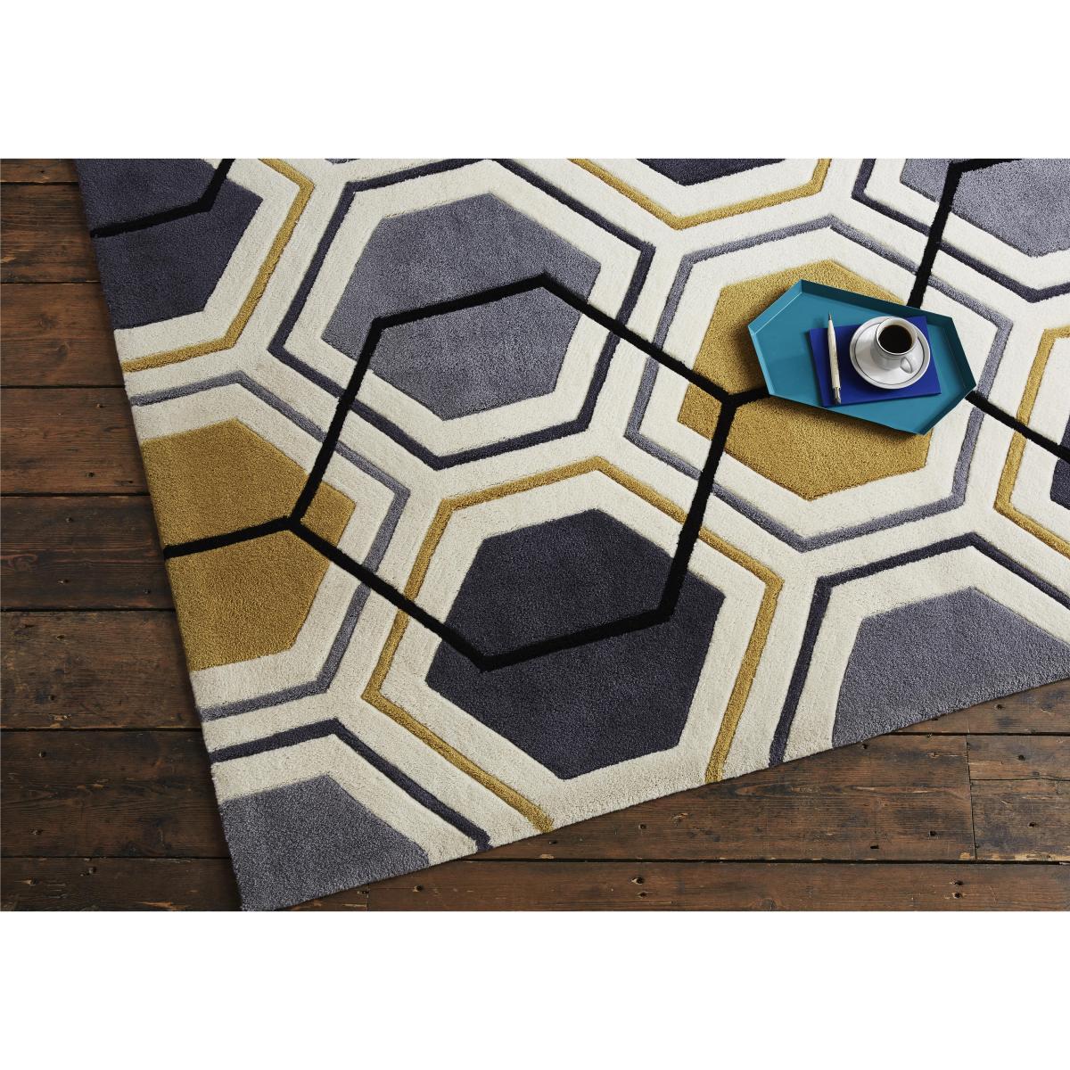 Add a modern finishing touch to your home with the gorgeously geometric Georgia rug. Its repeating hexagonal pattern is so on trend, and it’s is available in a choice of three fashionable colourways – yellow and grey, blue and grey and monochrome greys. Invitingly soft underfoot, yet usefully hardwearing. Contemporary rug with a striking geometric pattern. The rug is hand tufted, soft underfoot yet hardwearing. Featuring a repeating hexagonal pattern. Choose between 3 on trend colourways. Yellow and grey, blue and grey and grey monochrome. 100% acrylic. A chic modern rug for the modern home.