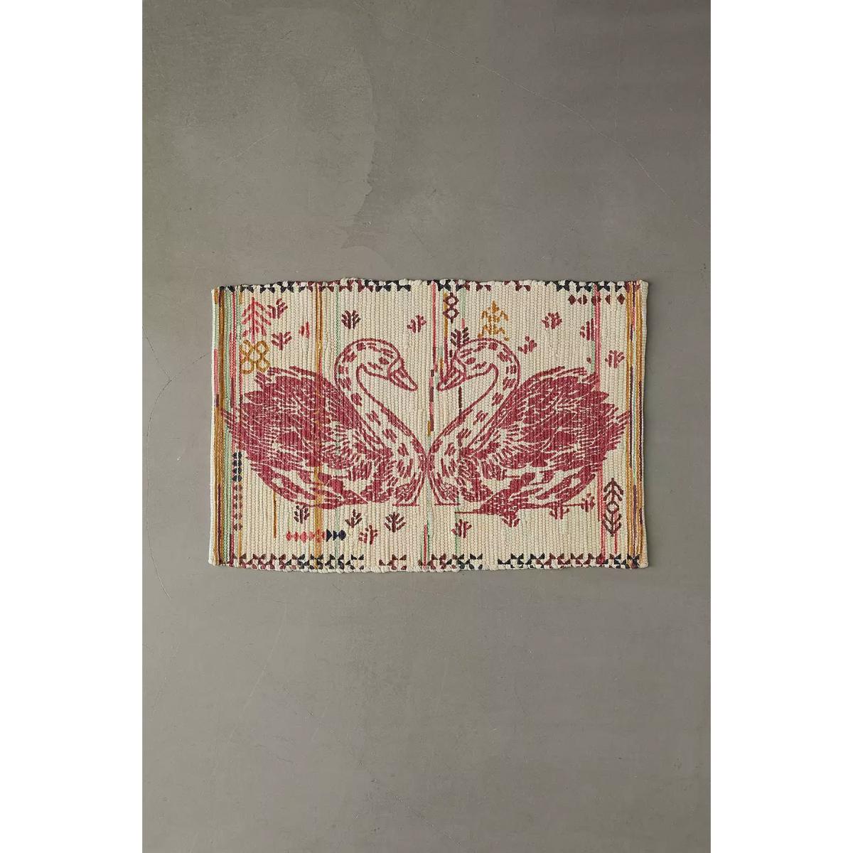 Regal rug in a hand woven cotton fabrication, perfect for adding some easy colour and texture to your space. Complete with swan motifs and geometric border details. **Content + Care** \- 100% Cotton \- Spot clean **Size** \- 61cm x 91.5cm (2ft x 3ft)
