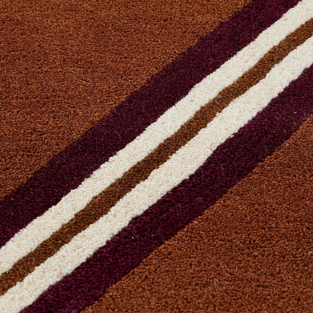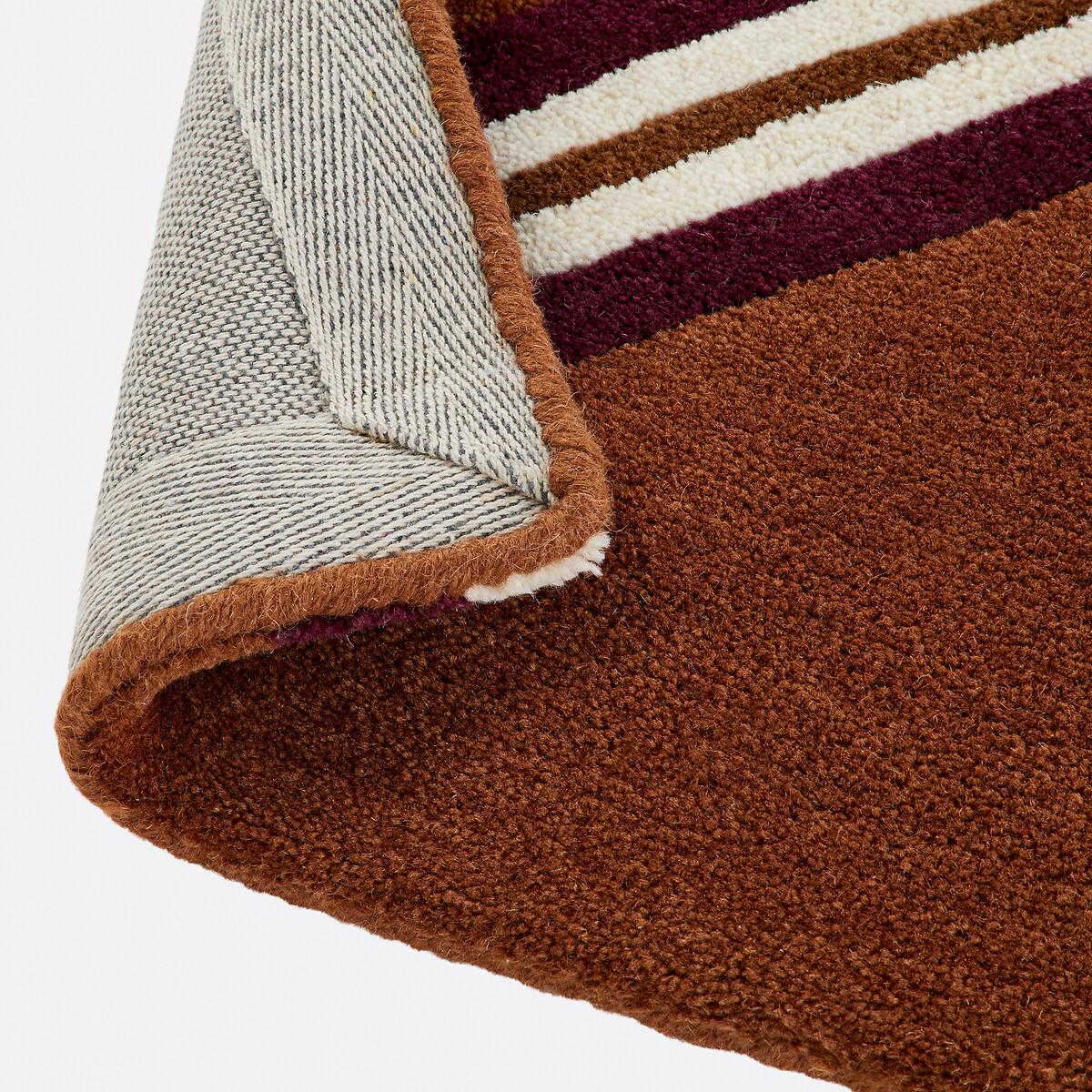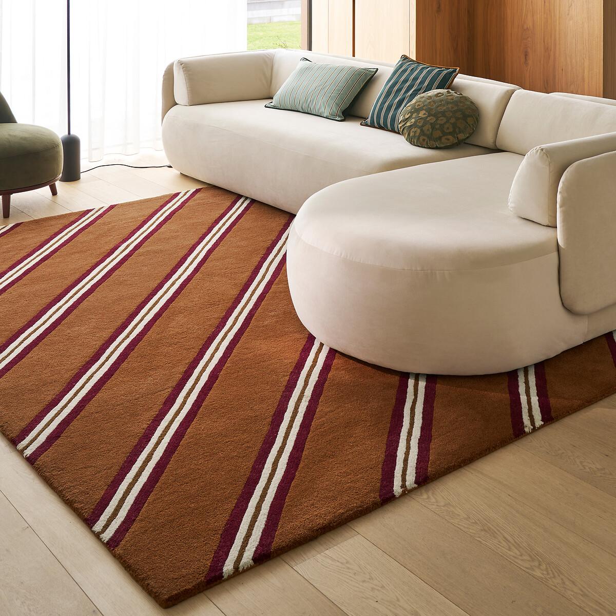 With its colourful stripes and seventies accents, this Georgio wool rug will inject retro energy into your room. A must-have for fans of vintage design. The Georgio rug is a handmade creation by La Redoute Intérieurs. Product Details • 100% wool • 4000g/m2 • Thickness: 2cm • Weaving type: Handmade • Underfloor heating compatible: Yes • Interior Use: Yes • For outdoor use: No • 70s-inspired striped print Quality • Wool is a warm and comfortable fibre. A wool rug is also an excellent thermal and sound insulator. • Hand-braided, each piece is unique and may have small irregularities which make it authentic.. Colours and dimensions may vary slightly. • Care information • Once unrolled, you must wait a few days for the carpet to return to its initial shape. • To keep the edges flat, roll your mat in the opposite direction. Leave it like this for an hour then put it back flat and place a heavy object on it for 2 days. • New, the carpet may give off an odour which dissipates over time. Ventilate your room regularly to reduce it. • To preserve its appearance, rotate your rug regularly in one direction or the other to minimise localised wear in the same places (due to successive passages), and loss of colour due to regular light exposure. Care instructions • Some materials are very fibrous (such as wool) Wool rugs pill naturally during the first few months: this is normal, because the carpet "bursts" by rejecting its excess fibres. Remove the fluff as much as possible by hand and do not use the vacuum cleaner in brushing mode, as this has the effect of pulling the fibres and tearing them off. The pilling will improve over time. • For maintenance, we advise you to vacuum it very little for the first month and then to vacuum it without rubbing too much, always without using the brush.. • Compatible with robot vacuum cleaners: No • Remove stains immediately with a clean, damp cloth. • Dry clean recommended. Dimensions • Width 120 x Length 170cm • Width 160 x Length 230cm • Width 200 x Length 290cm • OEKO-TEX® Standard 100. Standard 100 certification by OEKO-TEX® tests textile products for harmful substances via an independent, international label.