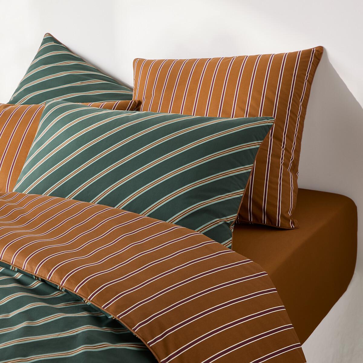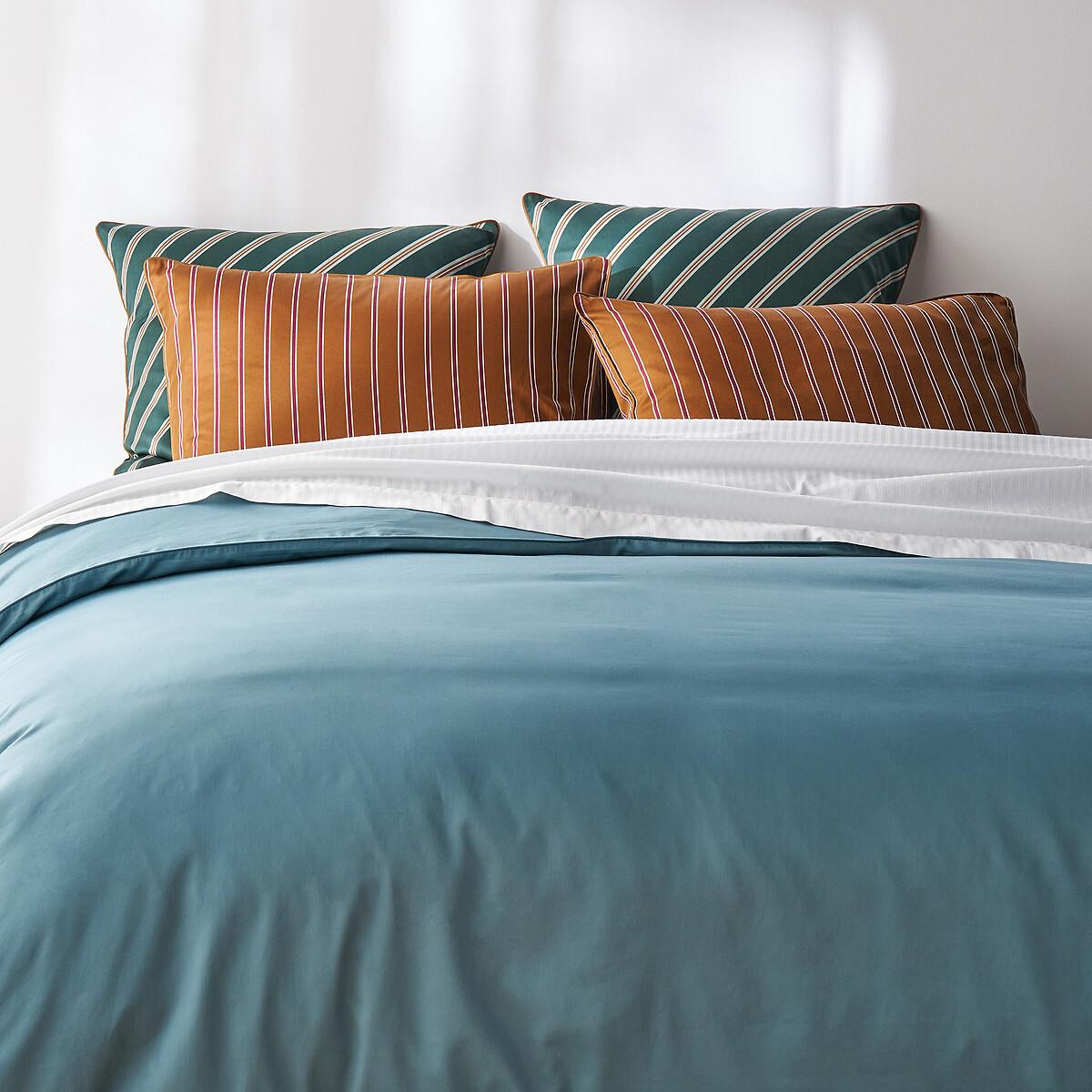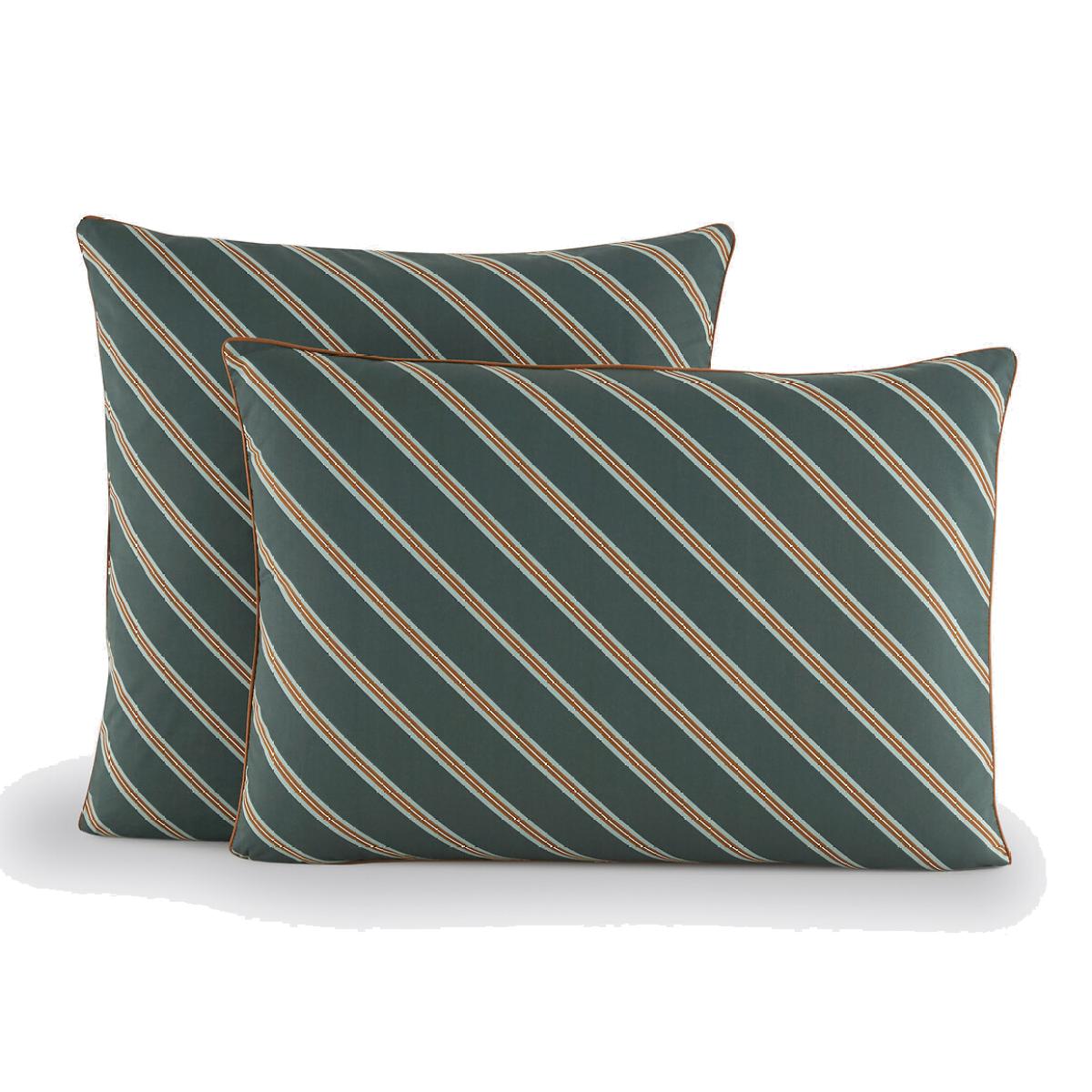 A luxe fabric and an interplay of lines inspired by art deco come together for this Georgio bed linen in cotton satin, revisited with a contemporary feel. Designed by La Redoute Interiors. Cotton with an ultra tight weave, cotton satin has a silky and satin feel. Product Details • 100% cotton • Cotton satin • 300 Thread Count: The higher the thread count, the higher the quality of the weave • Diagonal stripes front/back on green background • Contrasting taped edging. Care Advice • Machine washable at 60°C • By washing your laundry at 40°C instead of 60°C, you limit energy consumption. Dimensions • 50 x 70cm: Rectangular pillowcase • 63 x 63cm: Square pillowcase • OEKO-TEX® Standard 100. Standard 100 certification by OEKO-TEX® tests textile products for harmful substances via an independent, international label.