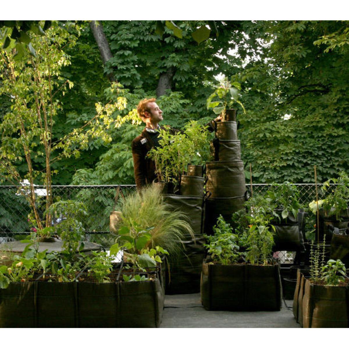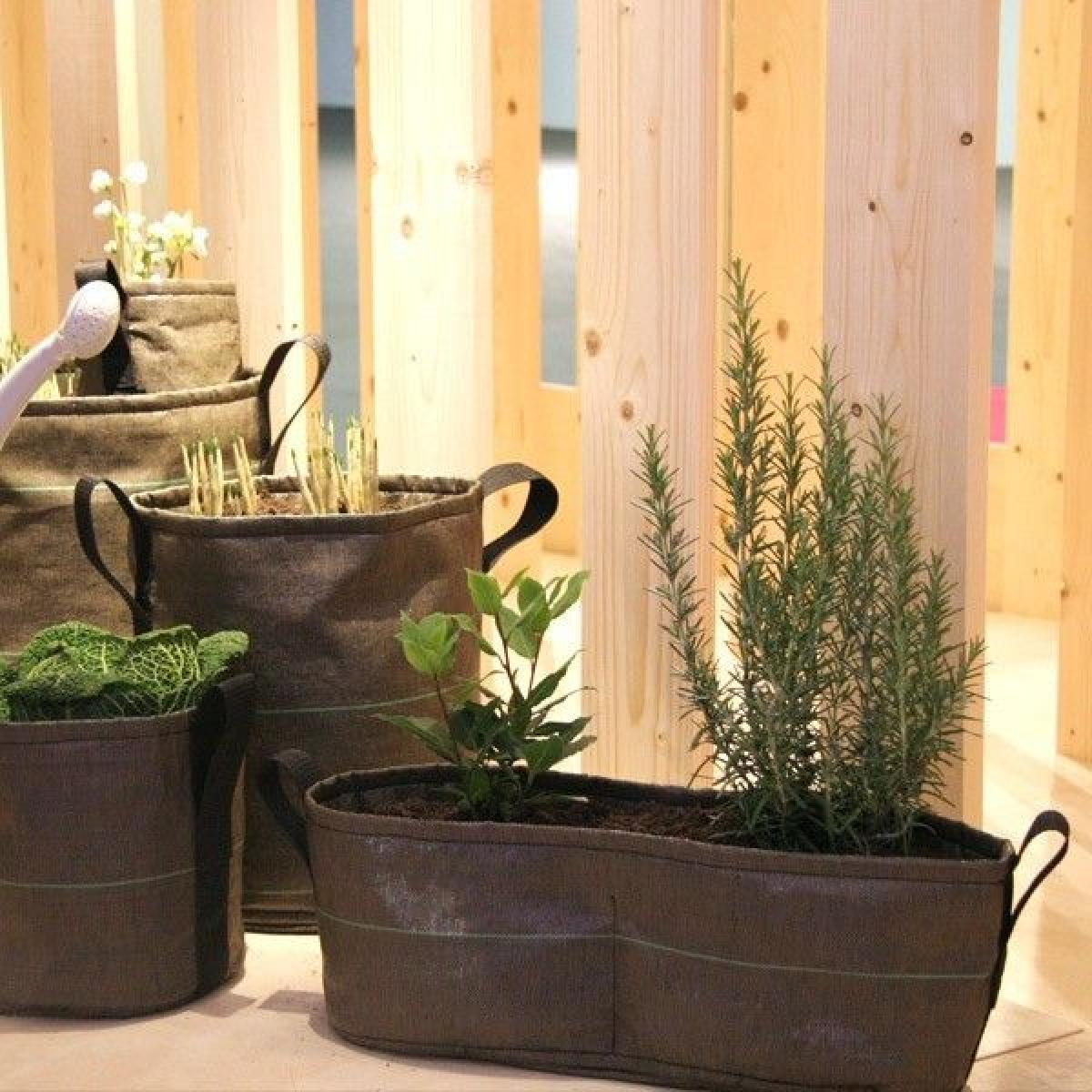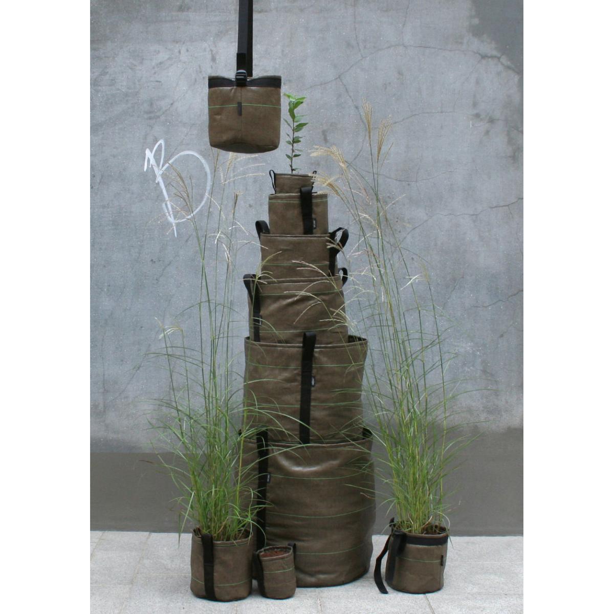 It's a pot. A pot for plants. A pot for flowers. A weightless, flexible and user-friendly pot. It's a weightless and portable bag taht follows you everywhere, inside the house, outside on the terrace, the balcony or in the garden. It's a new generation of flexible plant containers. It's a double-walled geotextile fabric, 100% recyclable, maintains the necessary balance between air, soil ans water. Frost and sun resistant.