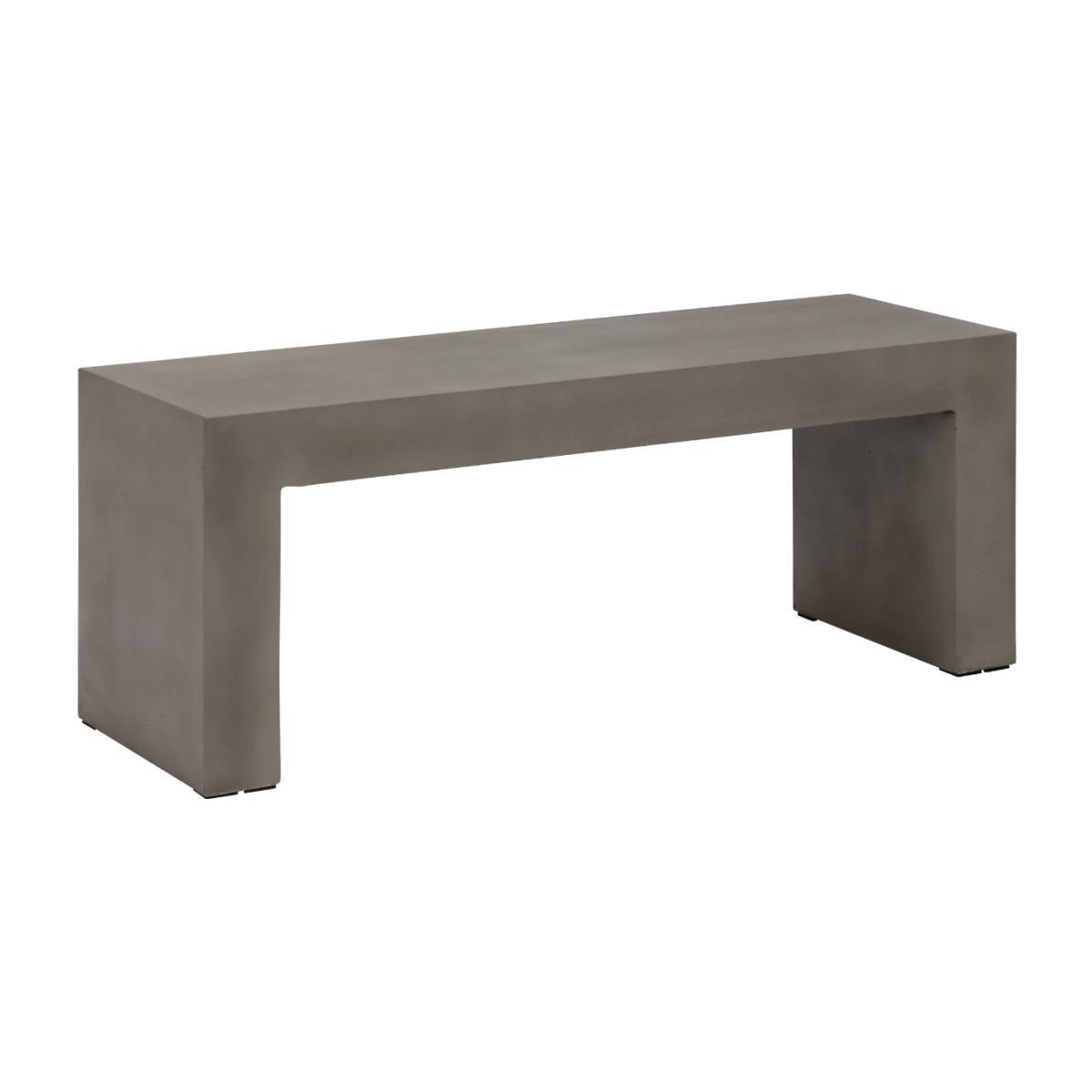 Design. Simplistic and contemporary, the concrete Geradis Ansei bench boasts a durable structure and chic style. The angular architectural design creates an urban feel perfect for industrial-inspired interiors or a variety of outdoor areas. Pair with the Solid dining table and Bula chairs for a stylish and contemporary combination.