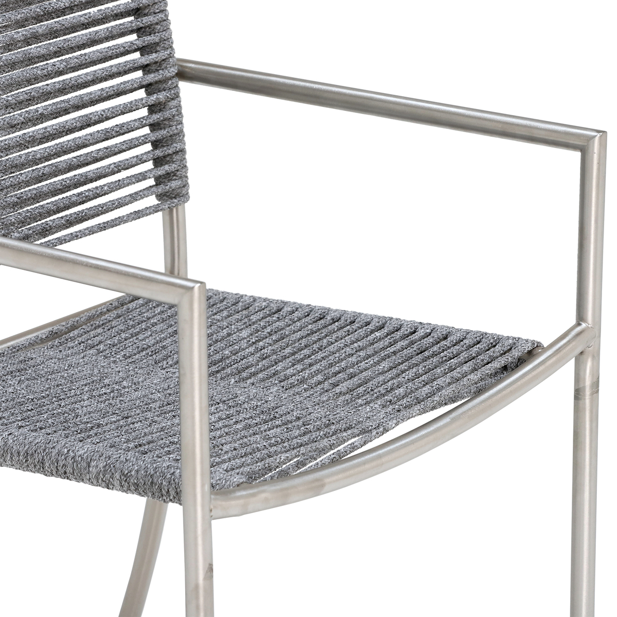 The cool and minimalist Geradis Bula Dining Chair is a stunning addition to any home. Featuring a pared back design of a stainless steel frame with unique, bungee cord upholstery, the contemporary Geradis gives off relaxing vibes with complementing cool, grey tones. Perfect for both interior and exterior use, the Geradis provides modern-urban inspired seating for family and friends.
