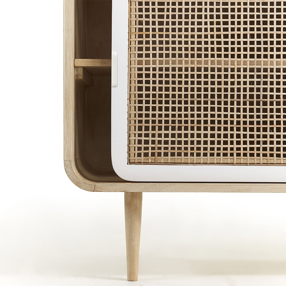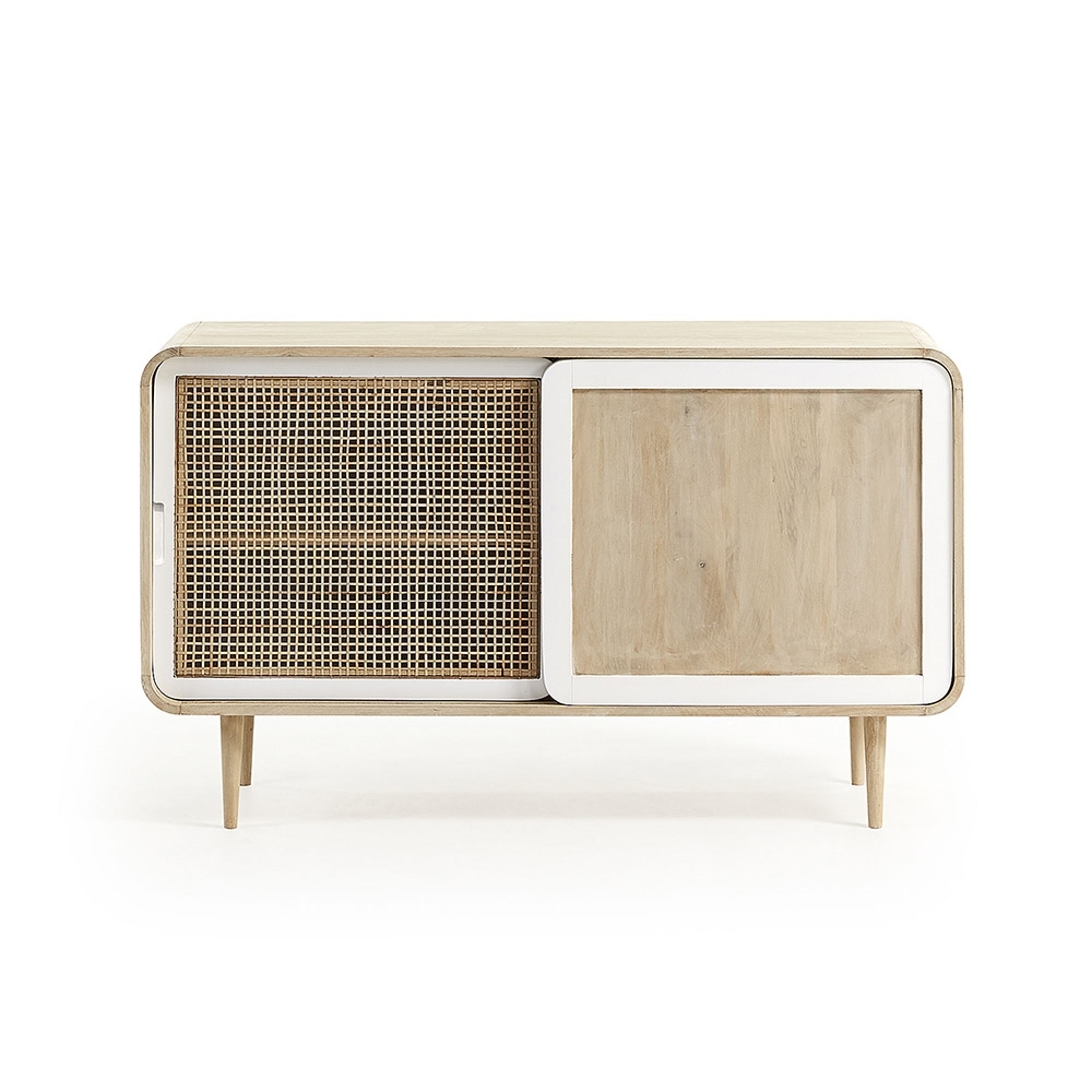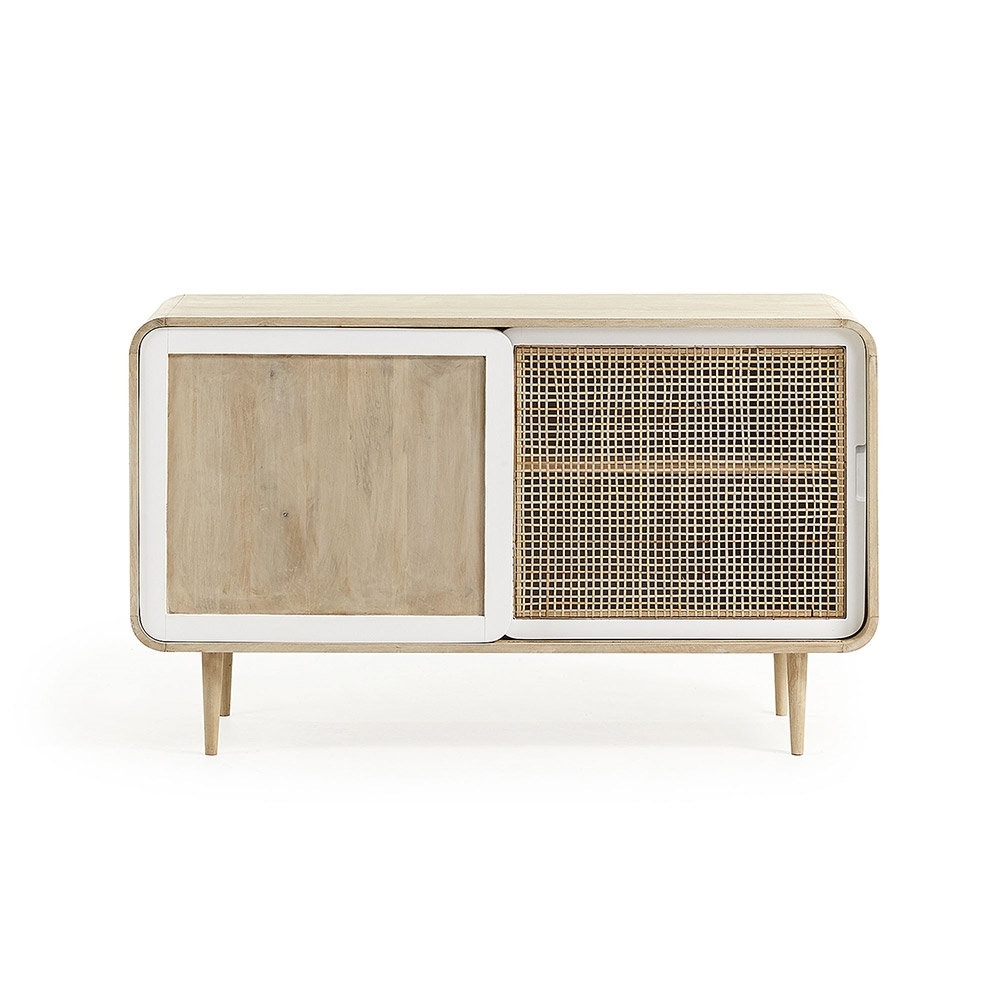Give your dining room a touch of Scandinavian style with the Gerald Mango Wood Sideboard, the perfect way to keep everything in its place. Manufactured from solid mango wood with a natural finish, this combined with the white lacquer detail gives this sideboard a simple look that is sure to bring a touch of Scandinavian style wherever it is placed. Ideal for storing dinnerware, the large compartment offers up ample space and with the inclusion of a shelf you can really get yourself organised! What's more, with sliding doors it will be even easier to reach everything.