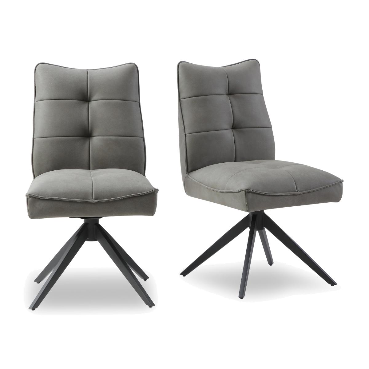You can never have too much of a good thing. And that’s precisely why we’ve combined two of our favourite furniture finishes into one desirable and very well-priced dining and living room furniture collection. Our exclusive Germain range is the perfect combination of luxury and durability, showcasing flawlessly patterned high-gloss solid marble tops paired with industrial metal accents. The range includes two sizes of extending dining tables, dining sets, sideboards and occasional tables, as well as dining sets and stylish dining room seating. The Germain range is exclusively available at Furniture Village. With this pair of swivel dining chairs, our exclusive Germain range brings together cool modern style and superb comfort – and at a great-value price. Why you'll love it Pair of dining chairs invites guests to linger. Modern style and comfort at a great-value price. Pocket spring seats with sumptuous cushioning. On-trend stitching and buttoning detail. Swivel base with black powder-coated metal legs. In a choice of upholstery colours. Also available in sets of 4 and 6 dining chairs. Only at Furniture Village. This pair of dining chairs is part of our Germain range. What you need to know Metal frames and legs. Cushioned with foam. Item code: GRM-2CH-CHAR-001