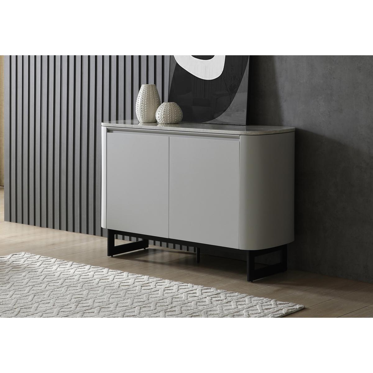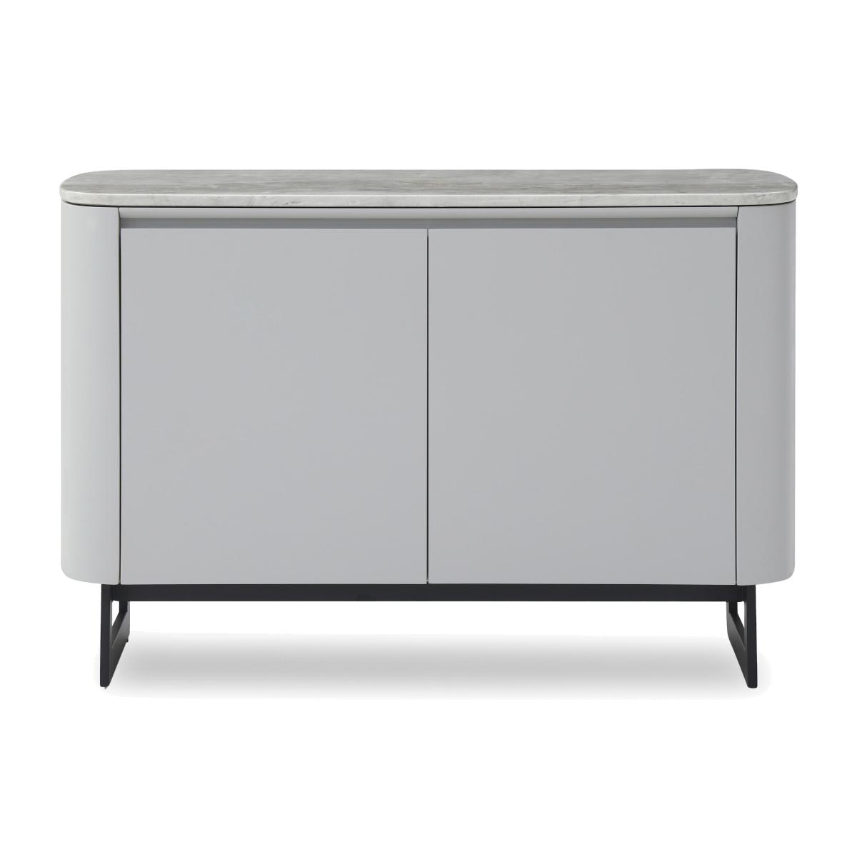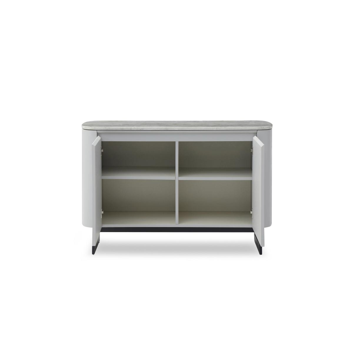 You can never have too much of a good thing. And that’s precisely why we’ve combined two of our favourite furniture finishes into one desirable and very well-priced dining and living room furniture collection. Our exclusive Germain range is the perfect combination of luxury and durability, showcasing flawlessly patterned high-gloss solid marble tops paired with industrial metal accents. The range includes two sizes of extending dining tables, dining sets, sideboards and occasional tables, as well as dining sets and stylish dining room seating. The Germain range is exclusively available at Furniture Village. In this great-value small sideboard, our exclusive Germain range brings together two of our favourite finishes – luxurious high-gloss marble and industrial black metal. Why you'll love it Luxurious marble style with a cool industrial aesthetic at a great-value price. The perfect combination of sleek opulence and everyday durability. This large sideboard has a glossy marble top. Made from solid marble finished with marbled patterning. Slender black metal legs have a powder-coated finish. Only at Furniture Village. This small sideboard is part of our Germain range. What you need to know Marble top, metal legs. 1 double-door cupboard. 1 adjustable shelf in each compartment. Marble is hardwearing but not indestructible, so it’s important to care for it properly. Spillages need to be removed immediately. To clean, wipe gently with a damp cloth using warm water, then buff dry. We recommend that you use coasters and placemats to protect against heat and moisture. Do not use knives to cut food on a marble table top, use as a work top, place heavy weights on the table or use acidic or abrasive cleaners. You should never sit or stand on a marble surface. For more advice on caring for your marble furniture, see our Dining care guide. WARNING! Item code: GRM-SSB---001