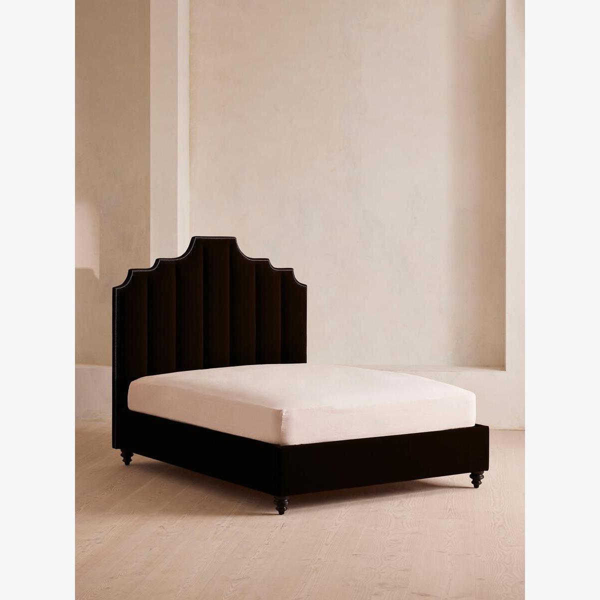 I’m a fan of this chocolate-velvet double bed for the way its scalloped headboard brings subtle drama without overpowering a room. It works equally well in a modern or art-deco scheme - think muted walls, brass bedside lamps and a low-pile rug in warm neutrals. To keep it from feeling too heavy, layer in crisp, lighter linens and introduce a single accent cushion in a contrasting tone, such as teal or soft ochre. Low-profile wooden or marble-top side tables help maintain a clean line, while a simple, sculptural mirror above the headboard will bounce light and complete the look.