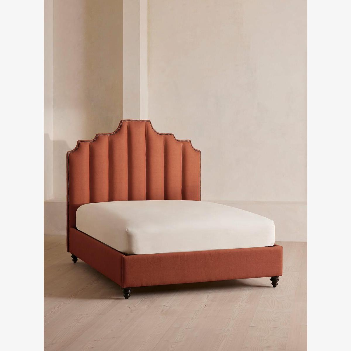 Created for the bedrooms at Babington House, our Gerrard style makes the bed the focal point of the room with a tall, fluted headboard in natural linen and decorative hand-studded border. Handmade in the UK by skilled craftsmen, this design rests on turned hardwood legs for added texture and sits low to the floor. Add it to your bedroom to bring a touch of our country retreat into your home. King-size bed Handcrafted in the UK Upholstered in 100% linen Available in other colours and fabrics Tall, fluted headboard Decorative hand-studded border Turned legs Sits low to the floor Available in other fabrics and sizes Pair with our SH Hypnos King Mattress Inspired by Babington House