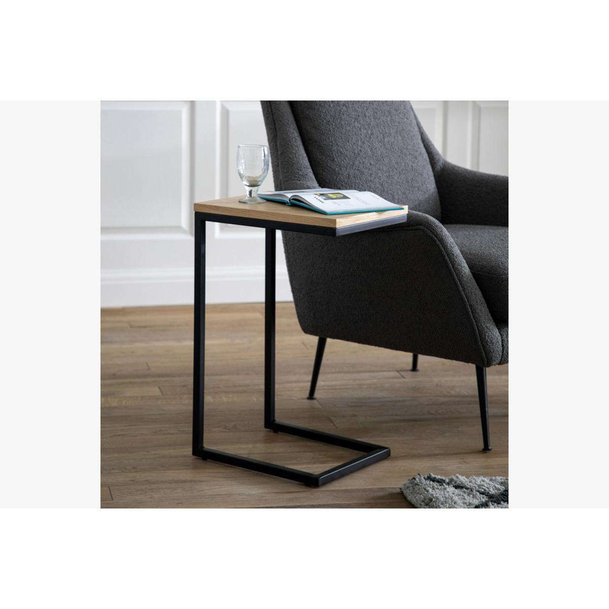 I’m a fan of this little C-table for its mix of warm oak and slim black steel - it’s both light in appearance and sturdy in use. It works particularly well in contemporary or Scandi-inspired living rooms where space is at a premium, slipping neatly beside a sofa or armchair as a drinks or laptop stand. To style it, keep accessories minimal: a small plant in a matt ceramic pot, a neat stack of magazines and a slim reading lamp, so it feels purposeful rather than cluttered. Because it’s so easy to move, you can also pull it into a bedroom or home office when you need an extra surface, making it a versatile piece in any compact interior.