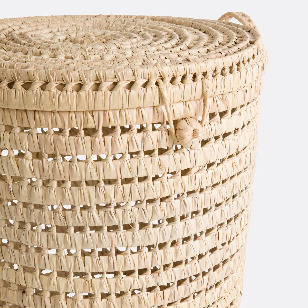 I love this basket for its natural, textured finish, which brings a touch of warmth and organic style to any space. It works particularly well in boho, coastal, or Scandinavian interiors where natural materials are key. The palm leaf design adds an element of visual interest without overwhelming the room, making it a versatile choice for laundry or general storage. For practical styling, consider pairing it with other woven or neutral-toned accessories to create a cohesive look, and place it in a corner for a functional yet decorative touch. Its size makes it ideal for bathrooms or bedrooms, and it can also double as a stylish storage solution for toys or throws when not in use.