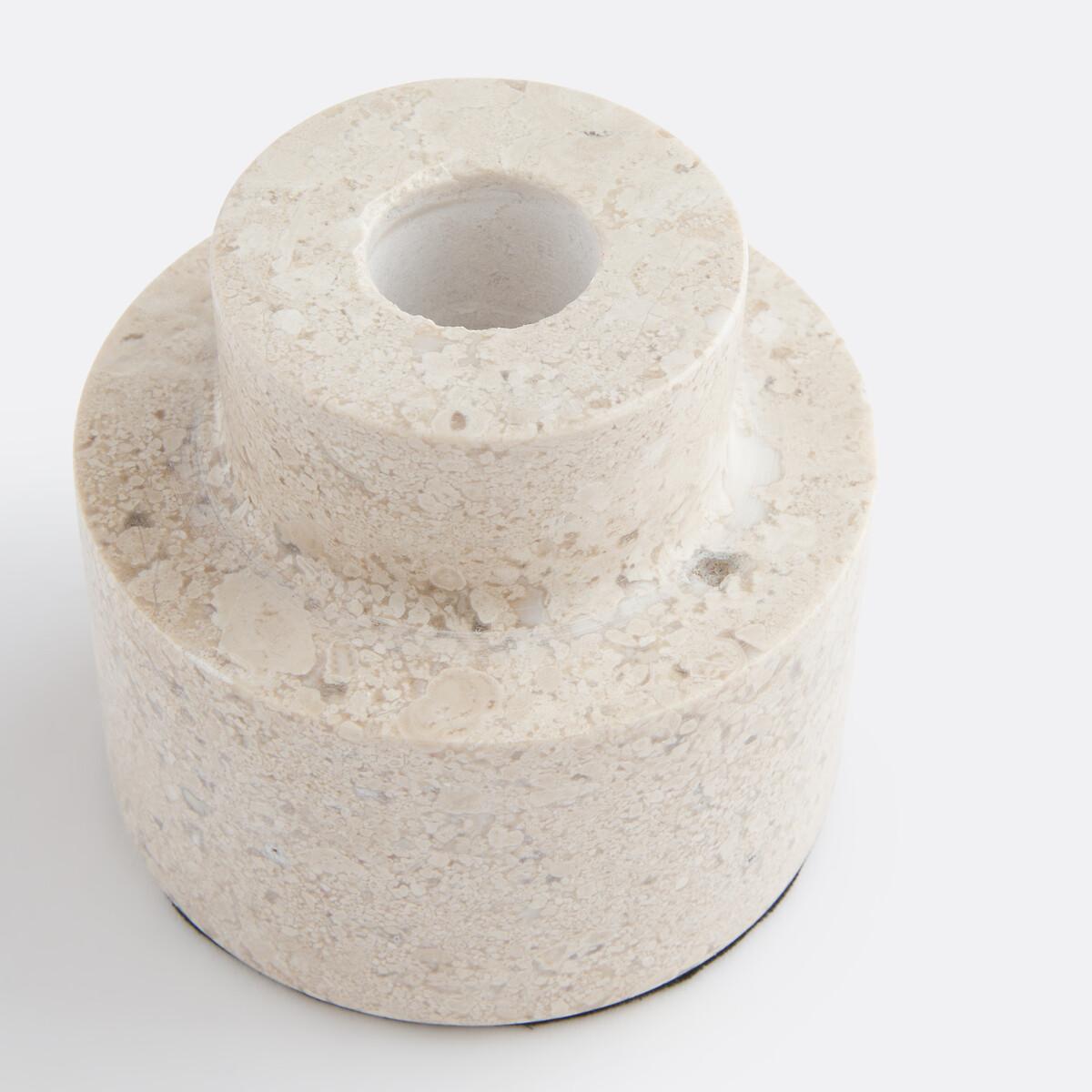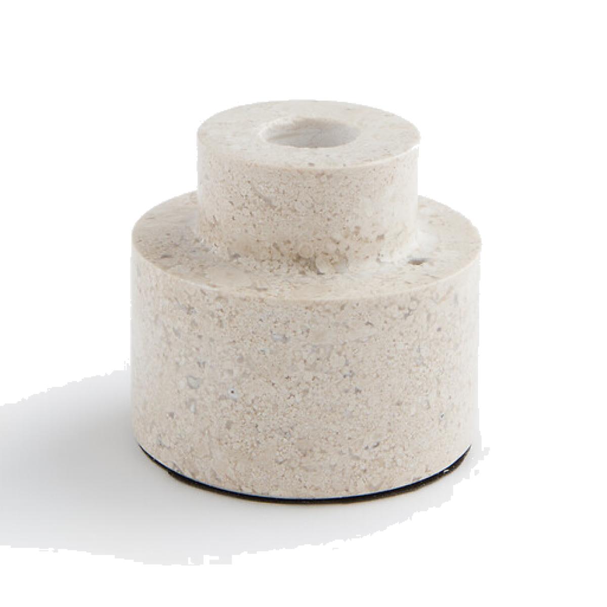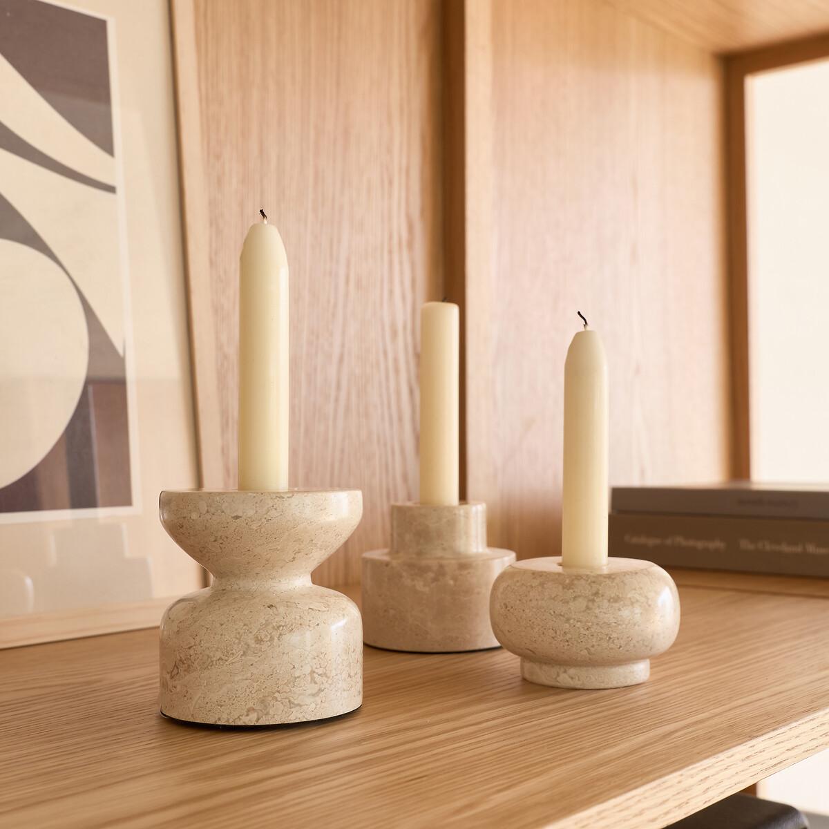 Soft, natural tones. Those of the travertine in which the Ghama candlestick is handcrafted. Its organic lines will bring a timeless, serene aesthetic to your home. To be used alone or combined with the other candlesticks in the range for a highly decorative effect. Product Details • 100% travertine • Candle not included • Hand-crafted, each piece is unique: colours and dimensions may vary from product to product. Dimensions • Diameter: 8cm/3" • Height: 5cm/2"