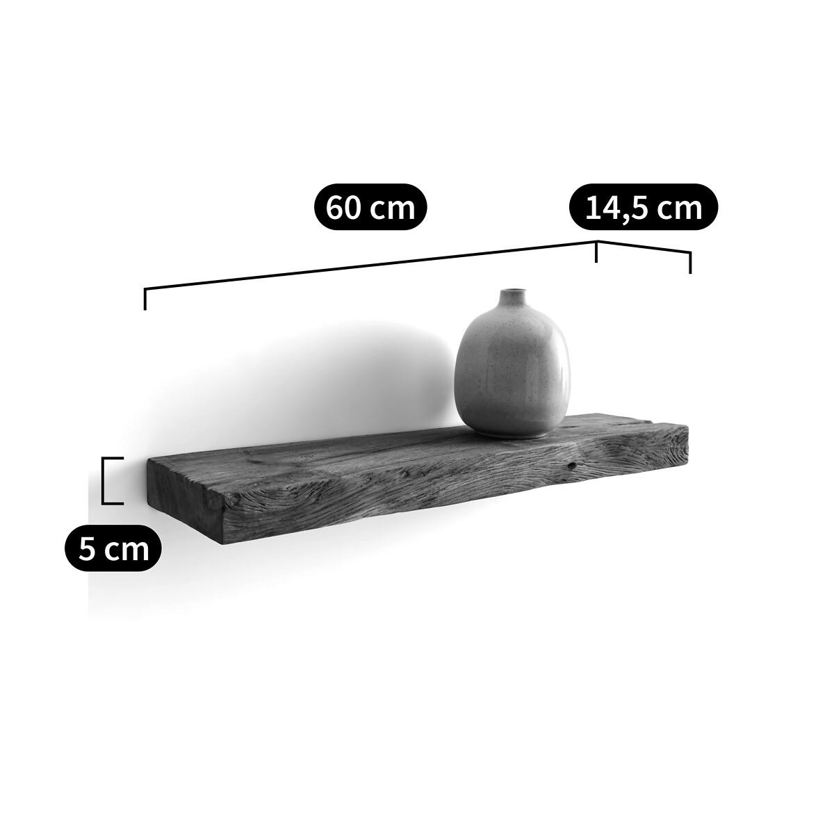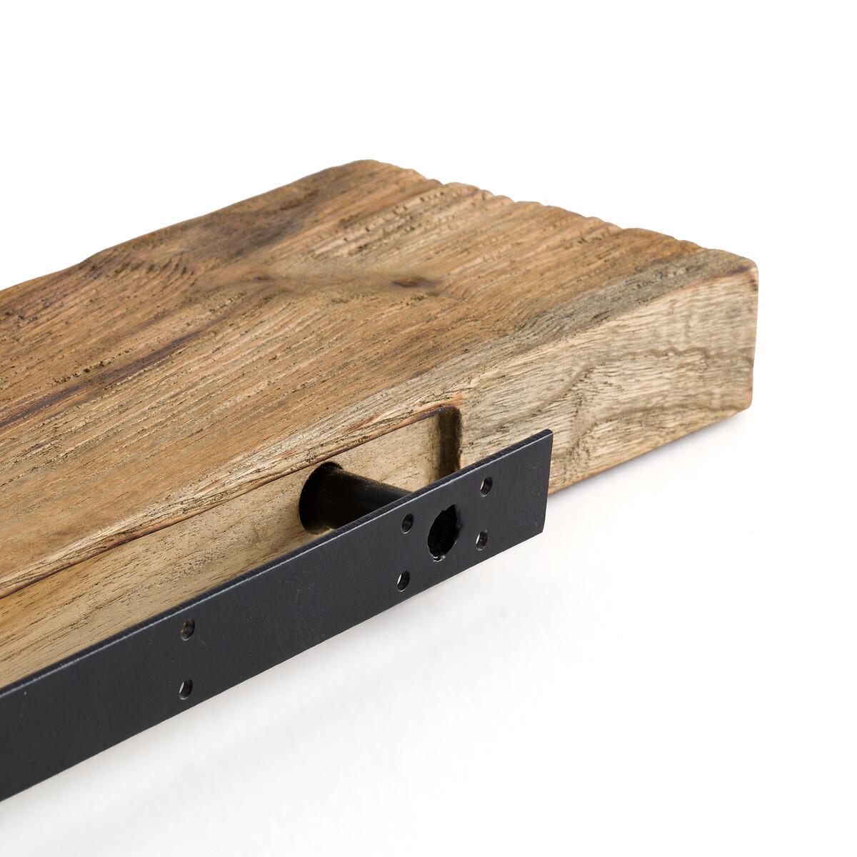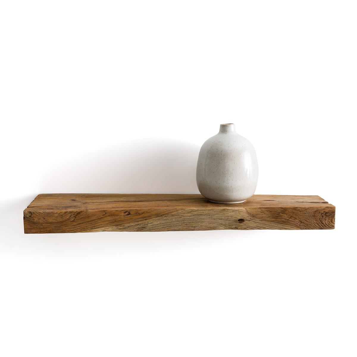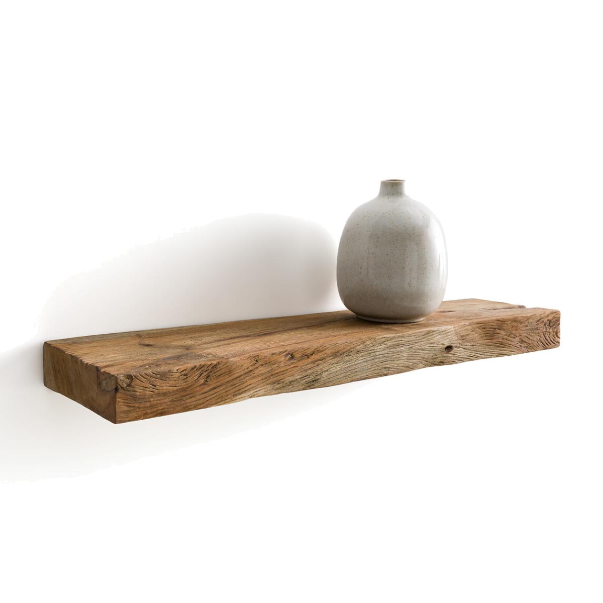 A raw, natural finish. As if aged by time, the Ghana shelf shows off its natural, irregular lines. A refined style that gives extra soul to our interiors. Product Details • In solid teak with an unworked edge • Invisible wall fixing (screws and plugs not included) • Each piece is unique. Dimensions • Length: 60cm • Height: 5cm • Depth: 14.5cm Parcel dimensions and weight:1 parcel • L64.5 x H9 x D20.5cm. 3.6kg.