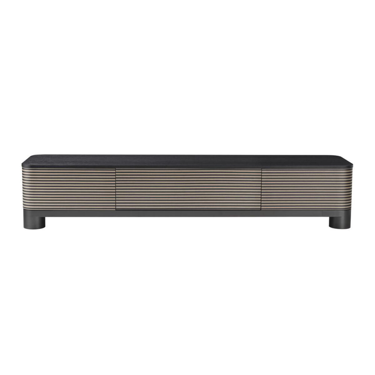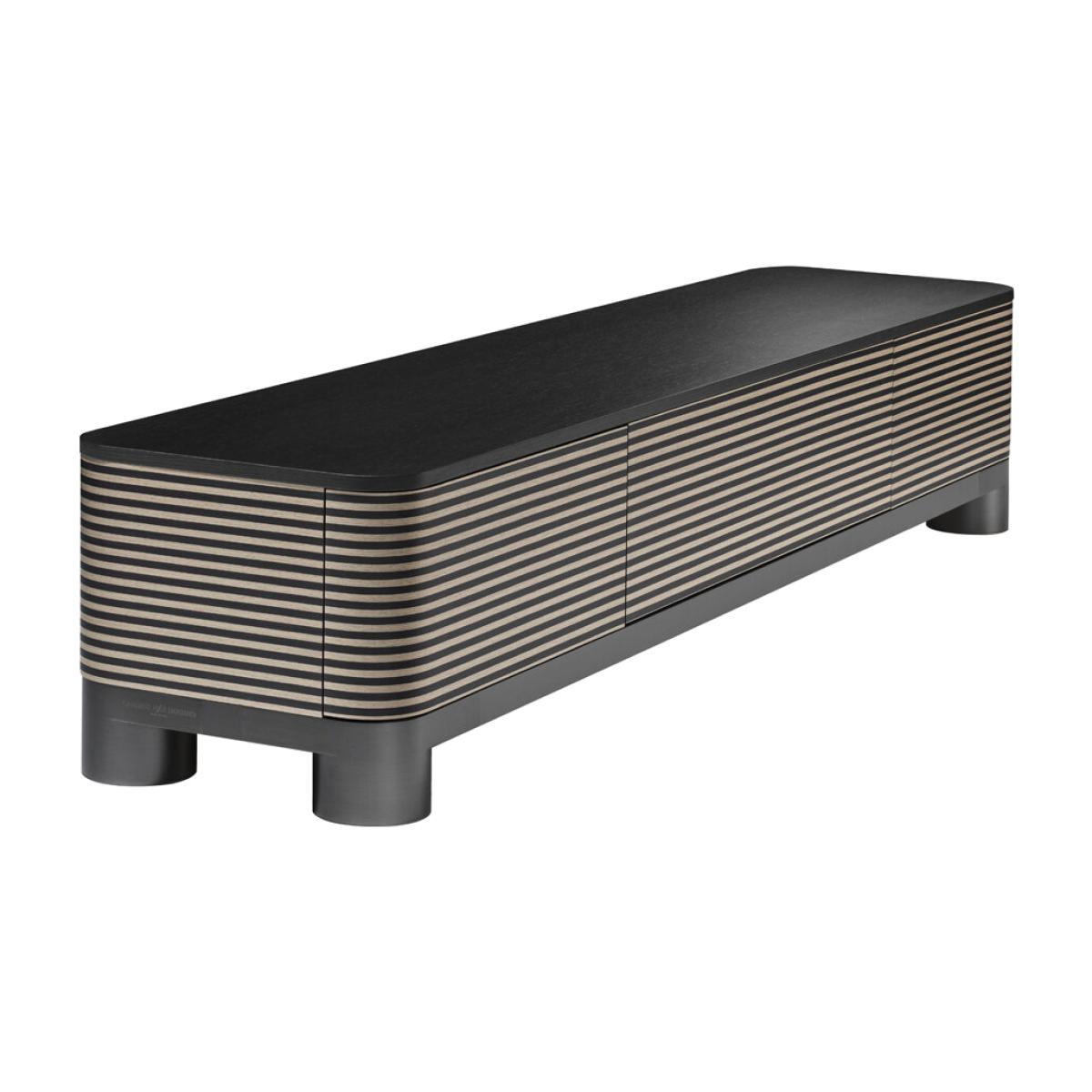 I love this piece for its sleek, contemporary design and versatile black finish, which makes it easy to style across a range of interiors-from modern minimalism to eclectic spaces. The bold lines and subtle ribbed detailing give it a distinctive look that adds visual interest without overwhelming the room. It works particularly well in living rooms or open-plan spaces, serving as a statement piece or a practical storage solution. To style it effectively, consider pairing with softer textures like plush textiles or metallic accents to balance the boldness, and use open shelves on top for decorative objects or a tray for everyday essentials. Its understated elegance helps to ground a space while offering ample storage for everyday items.