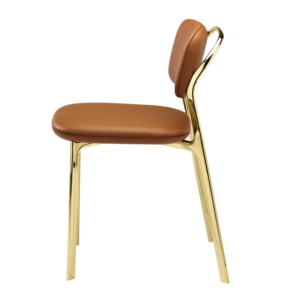 Make a statement with this Coast Chair from GHIDINI 1961. Inspired by the Northern California coastline, the design draws its influence from the golden hills and the roads that intersect them. Stylish and functional, this everyday object boasts chic brass legs, and a luxurious seat. A wonderful addition to your home, it blends architectural elements with fluid gestures. Available in two colourways.