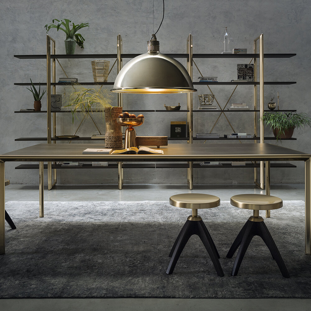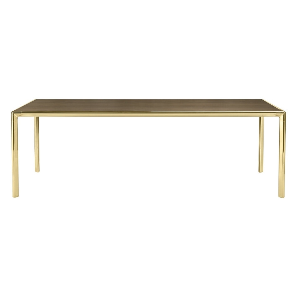 Dine in style with this Frame Dining Table from GHIDINI 1961. With a gold brass structure and charming wooden top, this dining table will add a sophisticated touch to your home. Designed by Stefano Giovannoni, the table is characterised by organic junctions. Key features: * Material: wood, brass * Dimensions: 240x120x77cm * Wooden table top * Gold detail