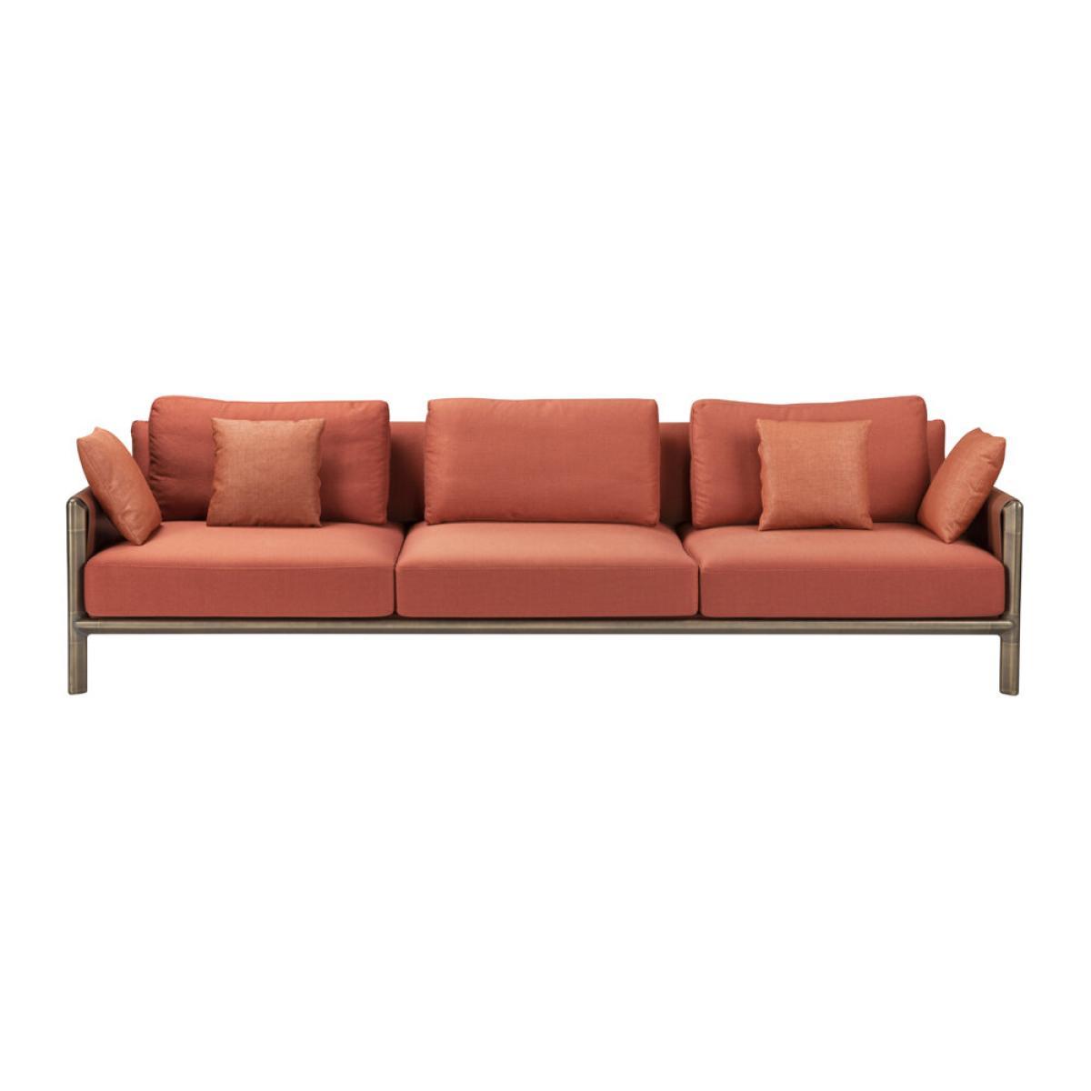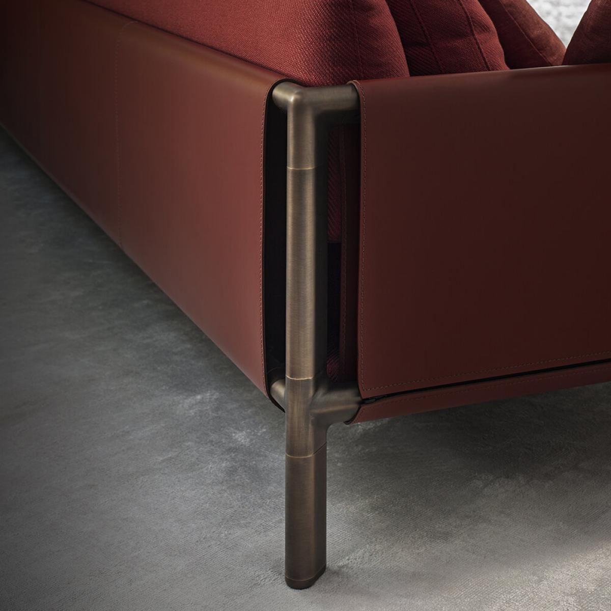 Inject colour into your home with this Frame Sofa from GHIDINI 1961. Designed by Stefano Giovannoni, the burnt orange sofa features leather and brass detailing. A statement piece, sit back and relax on this lovely design.