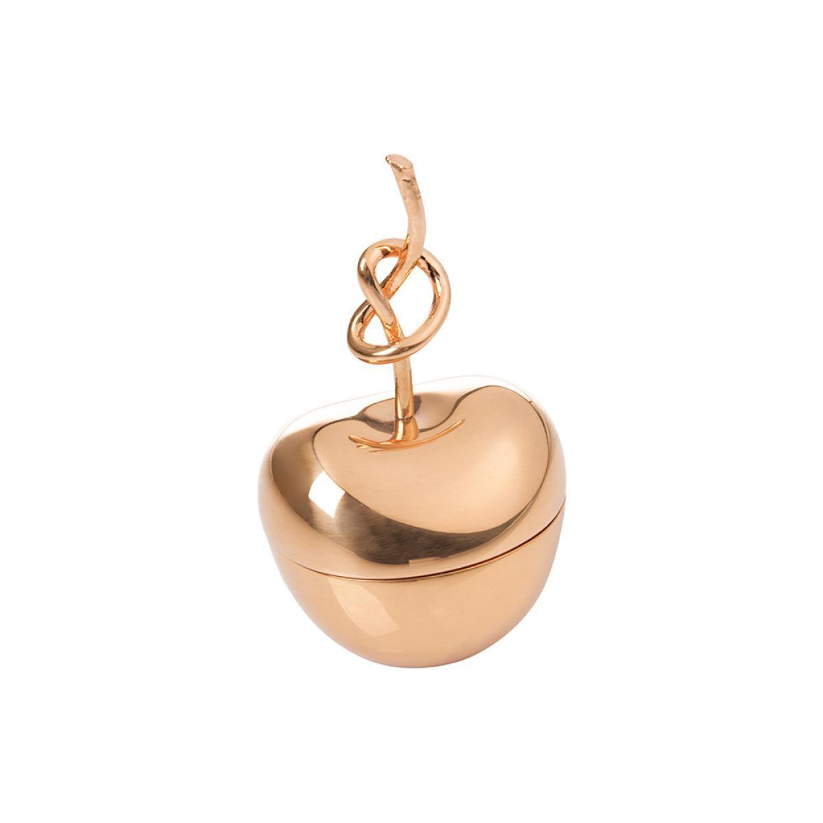 Put the cherry on top of your home style with this Knotted Cherry trinket box from GHIDINI 1961. Cast in brass and artfully handmade in Italy, this cherry shaped trinket box has been topped with a knotted stem. Perfect for popping in your most treasured trinkets or jewels, its rose gold colour will add a luxe touch wherever you put it.