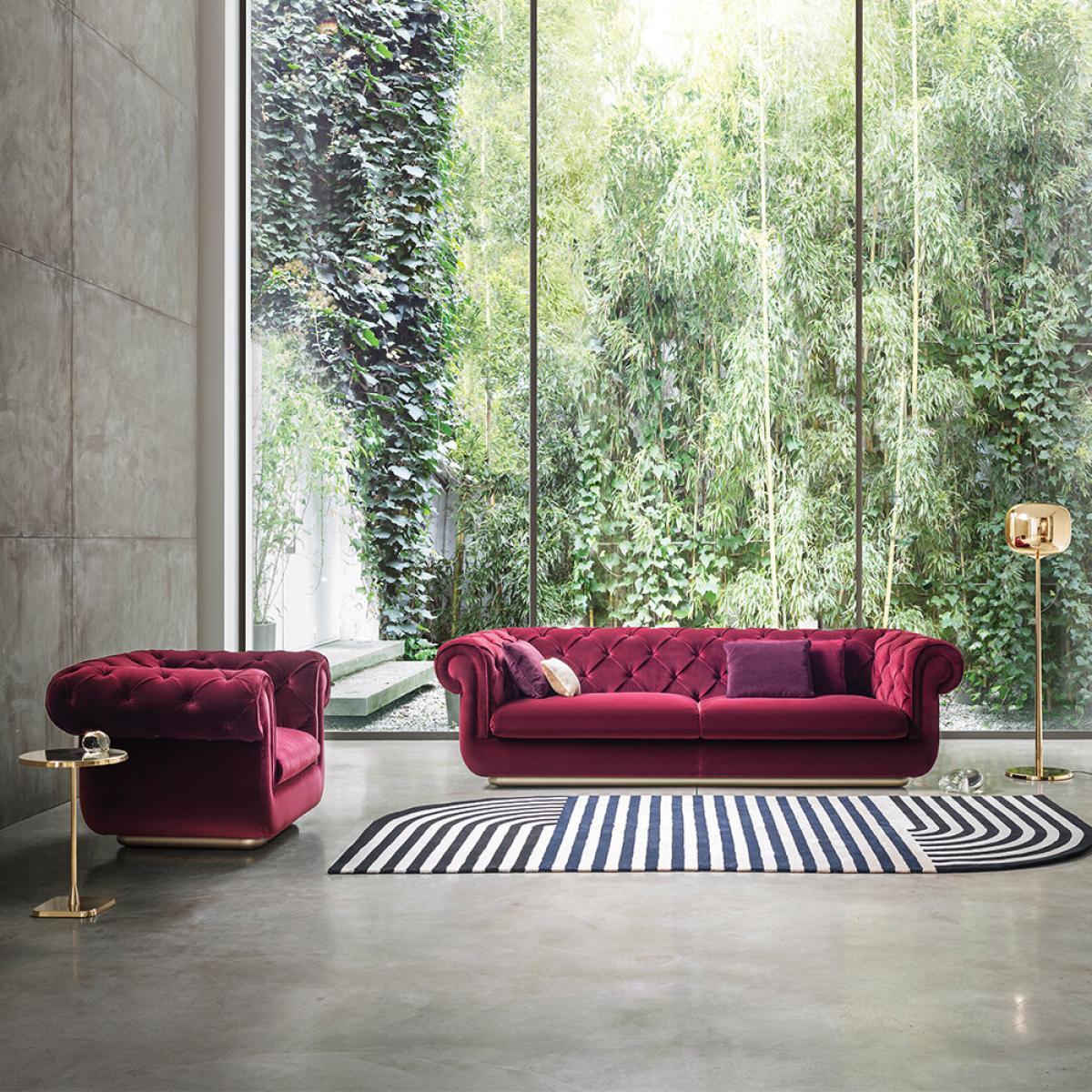 Lounge in luxury with this Opera sofa from GHIDINI 1961. Made from impossibly soft velvet in a rich plum hue, it features a quilted backrest that’s as comfortable as it is chic. With removable seat and back cushion covers, the aluminium feet are die casted in-house at GHIDINI 1961. Pair with the matching armchair available separately to complete the look.