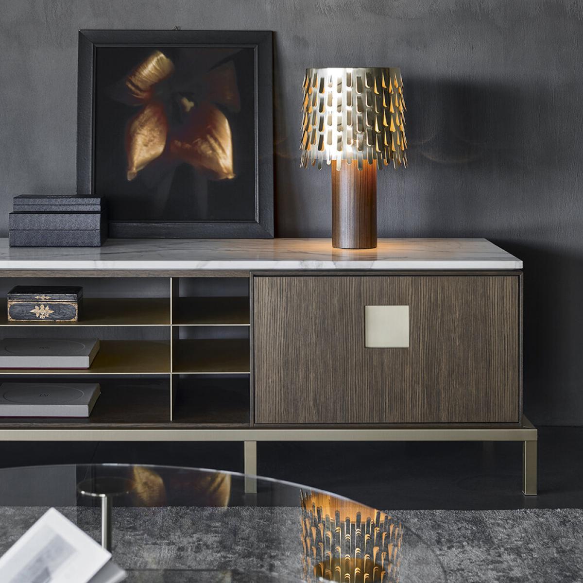 Add a touch of elegance to your home with this Zuan Living Cabinet from GHIDINI 1961. Inspired by the minimalist and timeless Japanese designs, this cabinet is a wonderful blend of oak, brass and marble. This statement piece will be a wonderful addition to your home.