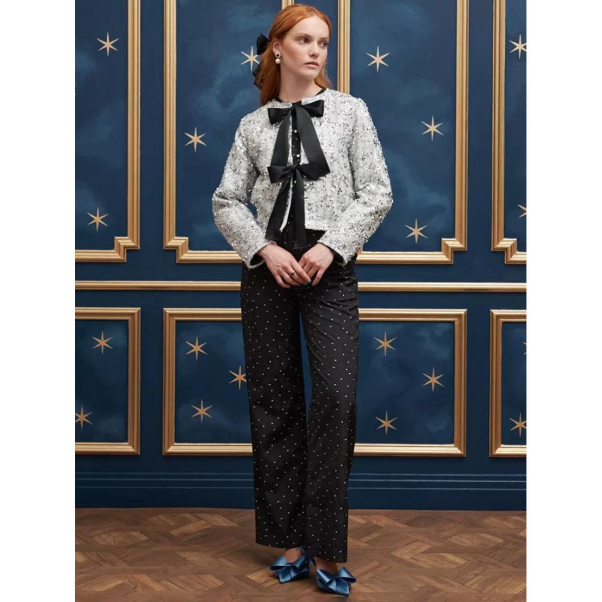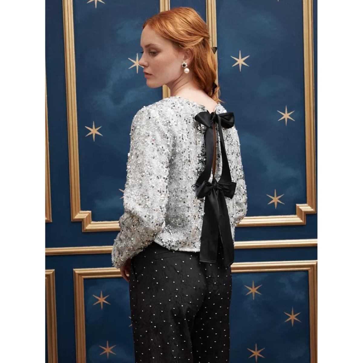 The Ghospell chandelier bow sequin cardigan is a statement piece that can add a touch of glamour to both modern and classic interiors. Its shimmering silver finish works particularly well in monochrome or metallic-themed rooms, especially when layered over simple, neutral furnishings to let the sparkle do the talking. For practical styling, consider pairing it with a sleek black or white outfit to highlight its glittering appeal, making it ideal for festive or special occasions. In interiors, it suits spaces with a touch of luxury - think velvet furniture or mirrored accents - where a dash of sparkle elevates the overall vibe without feeling overwhelming. It’s a great choice to add visual interest without sacrificing sophistication.