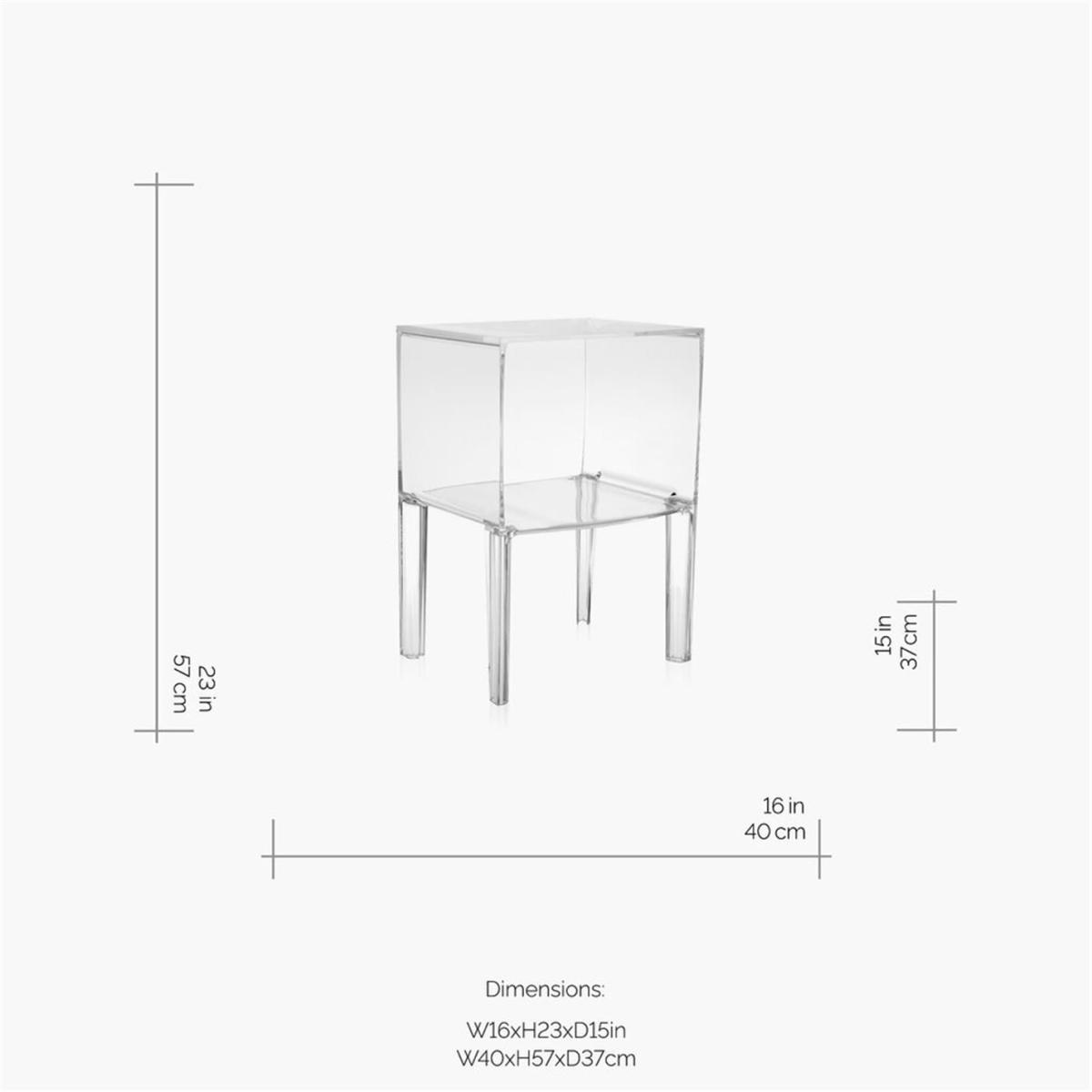 Bring iconic Kartell style to your home with this small Ghost Buster Commode in a transparent finish. Designed by Philippe Starck with Eugeni Quitllet, this modern piece of furniture is ideal for stylish storage in any space, from bedside to the living room. With its clean lines this design is reminiscent of classic furniture but the material and transparent finish give it a thoroughly contemporary finish.