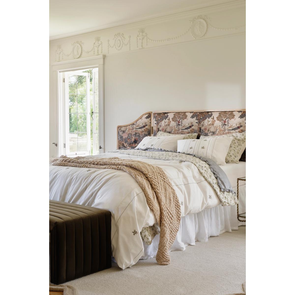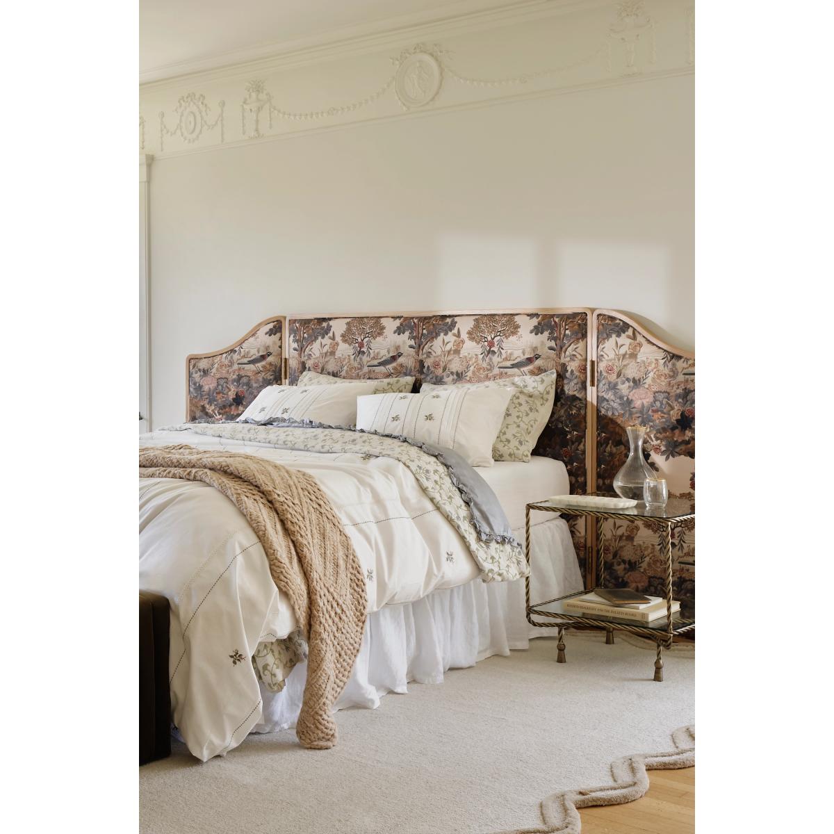 I love the Gia tapestry headboard for its richly textured, handmade feel that adds warmth and character to a bedroom. It works particularly well in eclectic, boho, or vintage-inspired interiors, where its tapestry design complements layered textiles and antique furnishings. To style it effectively, keep the bed linen relatively simple to let the headboard be the statement piece, and consider pairing with brass or antiqued-metal bedside tables, as shown here, for a cohesive vintage look. Practical tips include ensuring the headboard is at a comfortable height for sitting up in bed and balancing it with other textured or patterned accessories in the room to create a cosy yet curated space.