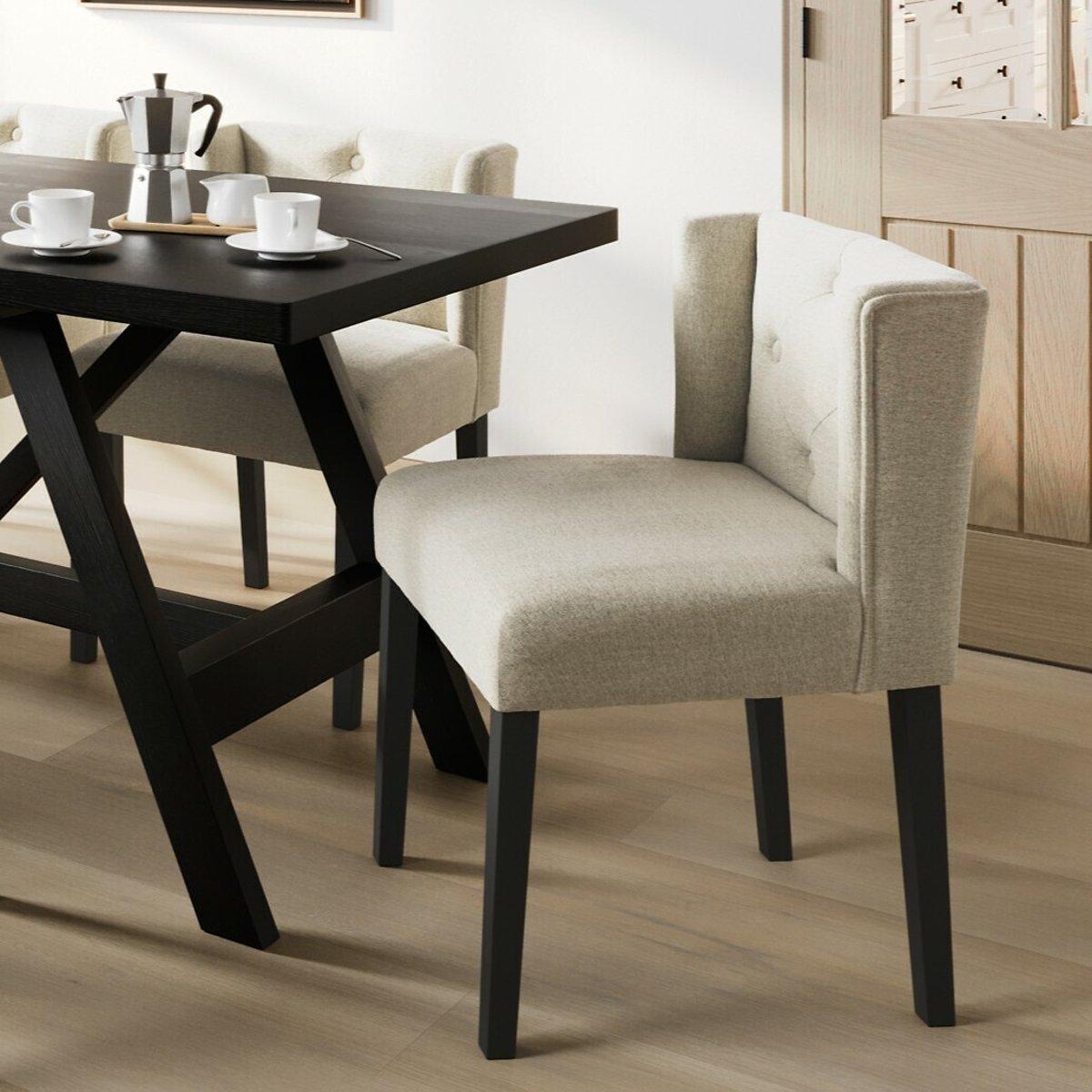 Tailored and timeless. Giada’s sleek armless silhouette and winged back offer sculptural support, wrapped in elegant linen for a soft, elevated finish. Designed for comfort and crafted for style, and complete with tufted button back, it’s a refined addition to any dining space. Also available with arms — mix and match for a cohesive, contemporary look. Product Details • Linen upholstered seat • Wood legs • Winged back for added support and comfort • Partial assembly required (legs/feet only) • 12 month manufacturers warranty • Care advice - Wipe with a clean damp cloth or soft brush. Product Composition - Linen Blend Fabric, Rubberwood. Product Dimensions - 49 cm x 57 cm x 79 cm , Weight - 7.8 KGSeat Height: 51 cm. Back Height: 32 cm Clearance to floor: 36 cm Package Dimensions - 51 cm x 47 cm x 47 cm, Weight 9 kg. This product will be dispatched by one of our trusted suppliers. You’ll be contacted by their selected courier about your delivery. Please note: this product cannot be delivered to all Offshore Islands, Northern Ireland or Republic of Ireland.