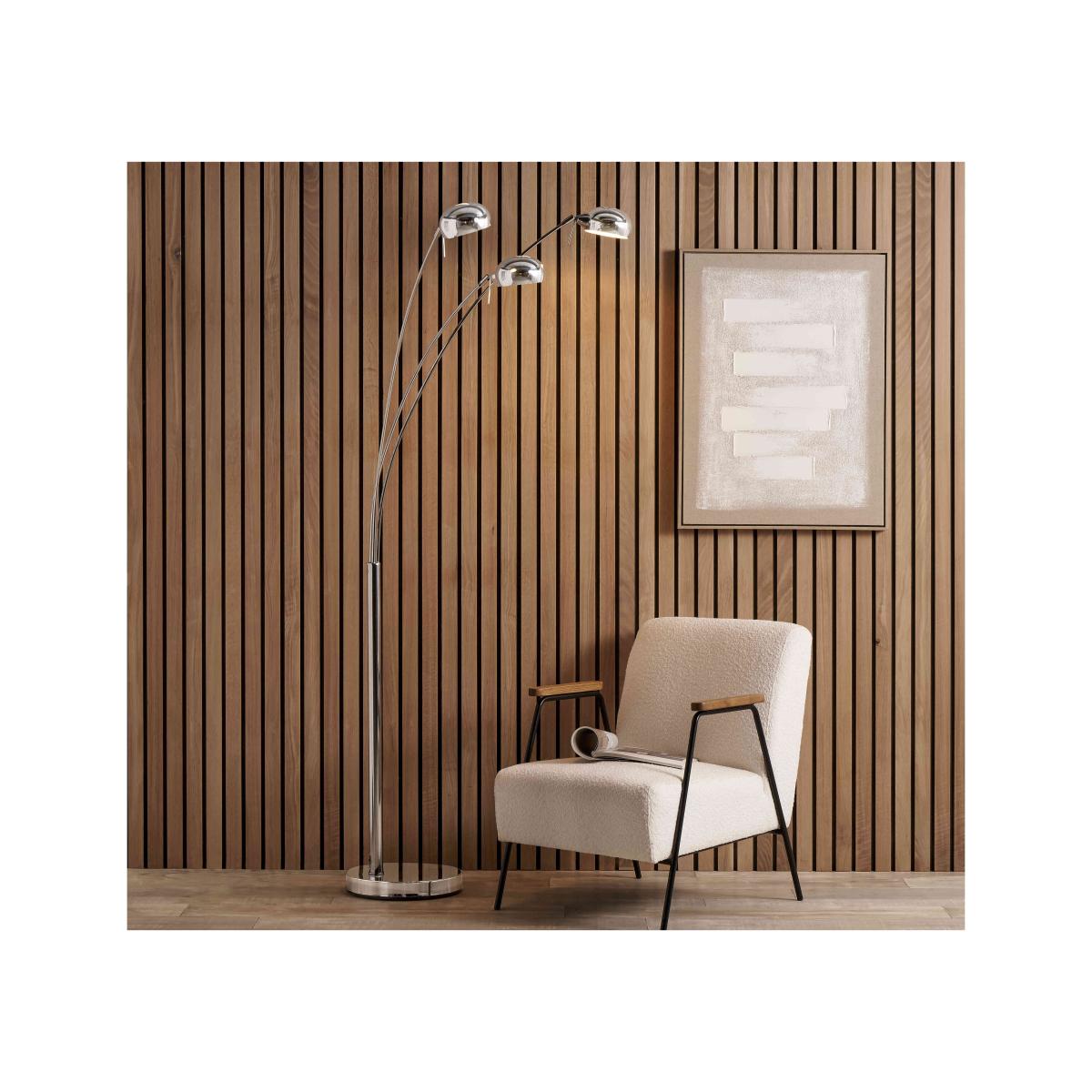 Looking for a uniquely styled floor lamp to illuminate your space? The Giana 3 light floor lamp is perfect for lighting up any contemporary interior. Why you'll love it This stylish floor lamp features 3 easily adjustable arms. Finished with a shiny nickel layer that suits contemporary interiors. Perfect for a reading nook paired with a comfy armchair. What you need to know Made from sturdy metal and finished with nickel. Operates with a foot switch. Requires 3 x 6-9W SES/E14 LED bulbs (not included). Dimensions Width: 35 cm (14 inches) Height: 208 cm (82 inches) Depth: 125 cm (50 inches) Weight: 14.4 kg