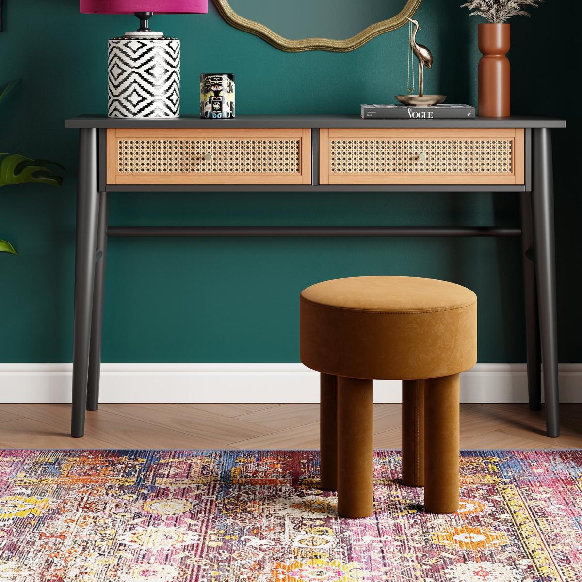 I love this little footstool for its plush velvet finish and versatile caramel colour, which adds warmth and texture to a variety of interiors. It's perfect for contemporary, mid-century, or even eclectic spaces, working well alongside both neutral and bold colour schemes. Practical styling tips include pairing it with a statement armchair or using it as a functional piece to make a cosy reading nook. Its compact size makes it ideal for smaller rooms or as an extra perch, and velvet's luxurious feel can elevate the overall look when combined with other soft furnishings like cushions or throws. It’s a great way to add a touch of sophistication while remaining practical.