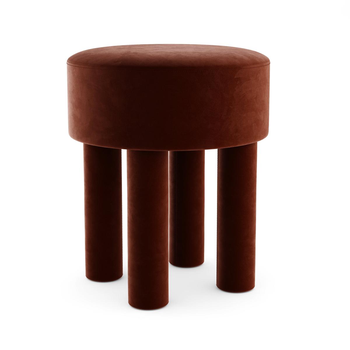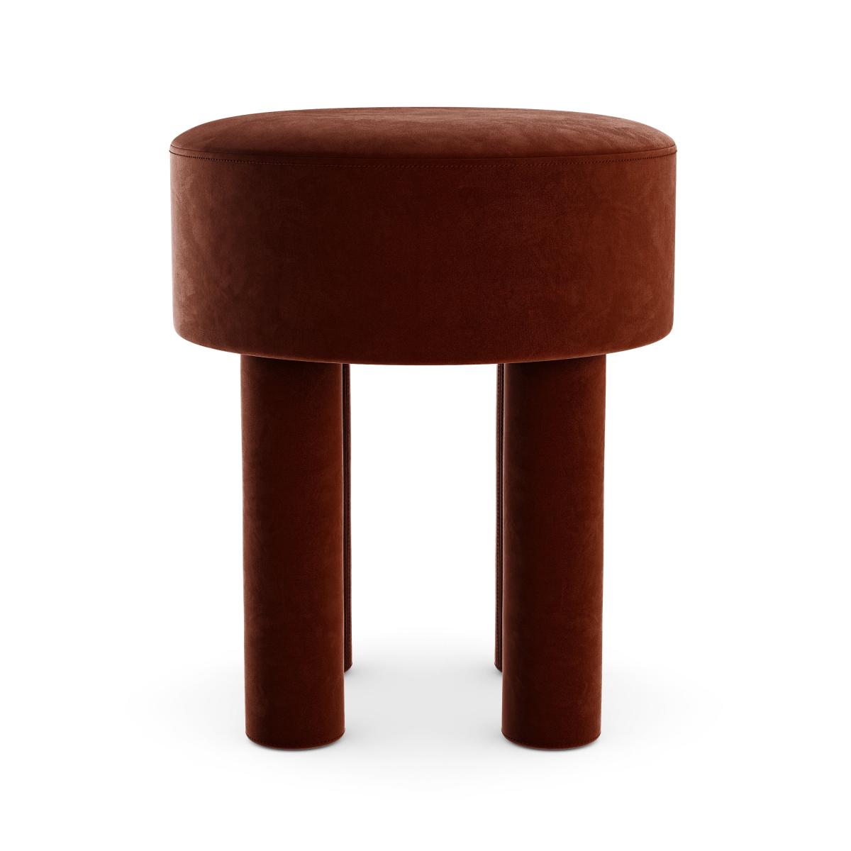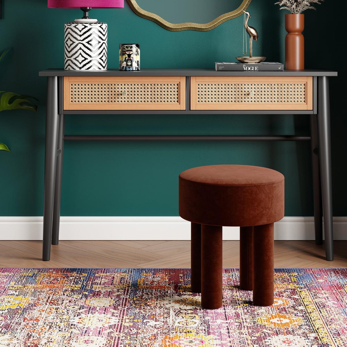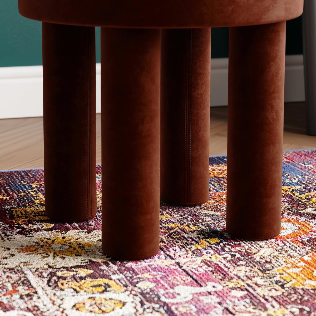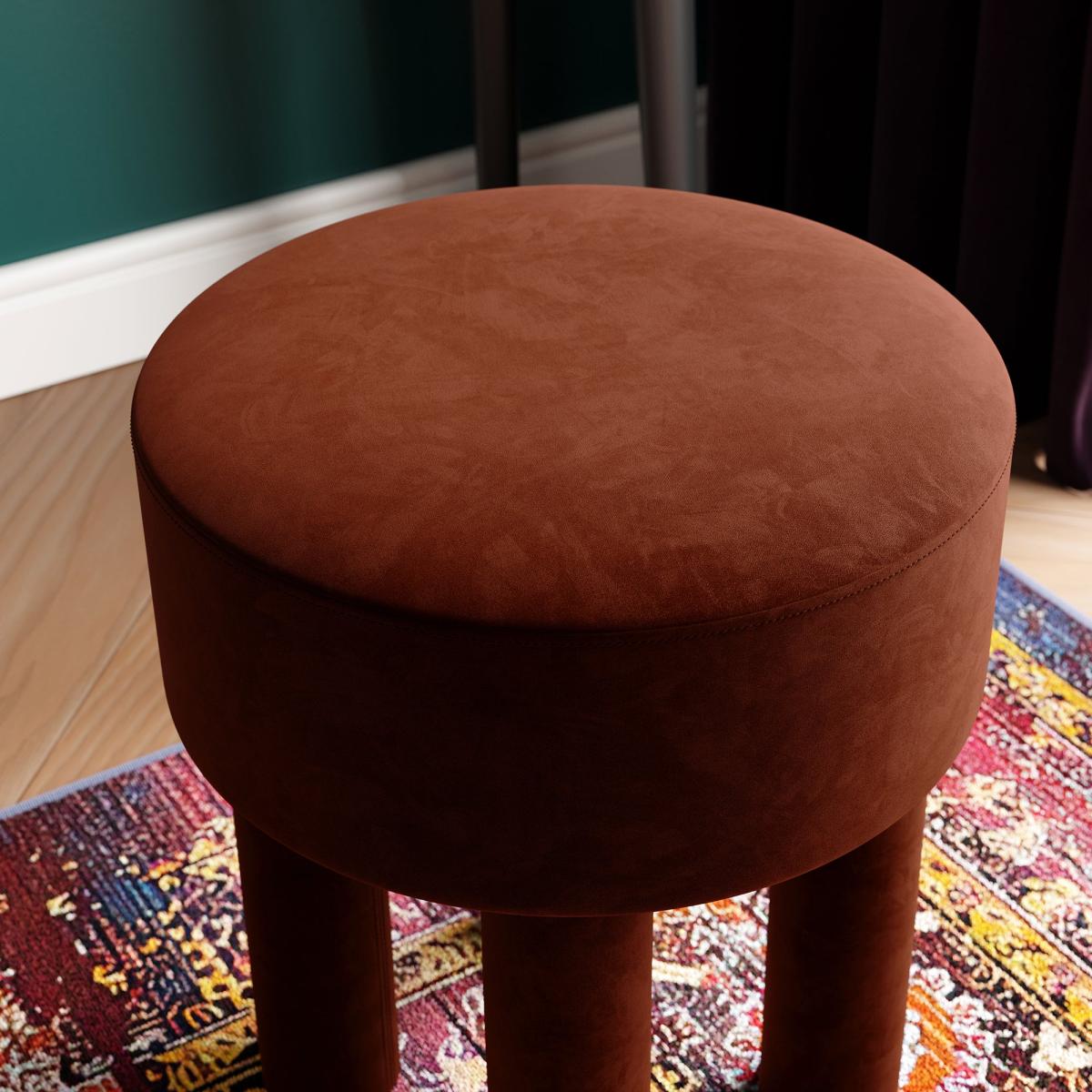 I love this little footstool for its rich orange-umber velvet finish, which instantly adds warmth and a touch of luxury to a variety of interiors. It works particularly well in eclectic, mid-century modern, or boho-inspired spaces where bold colours and textures are celebrated. Practical styling tips include using it as a versatile accent piece-perfect for propping up your feet, as an extra seat, or even as a side table with a tray on top. Its compact size makes it suitable for smaller rooms or beneath desks, helping to maximise space without sacrificing style. Pair it with neutral or patterned surrounds to make the colour pop, and consider layering with textured cushions or throws for a cosy, inviting look.