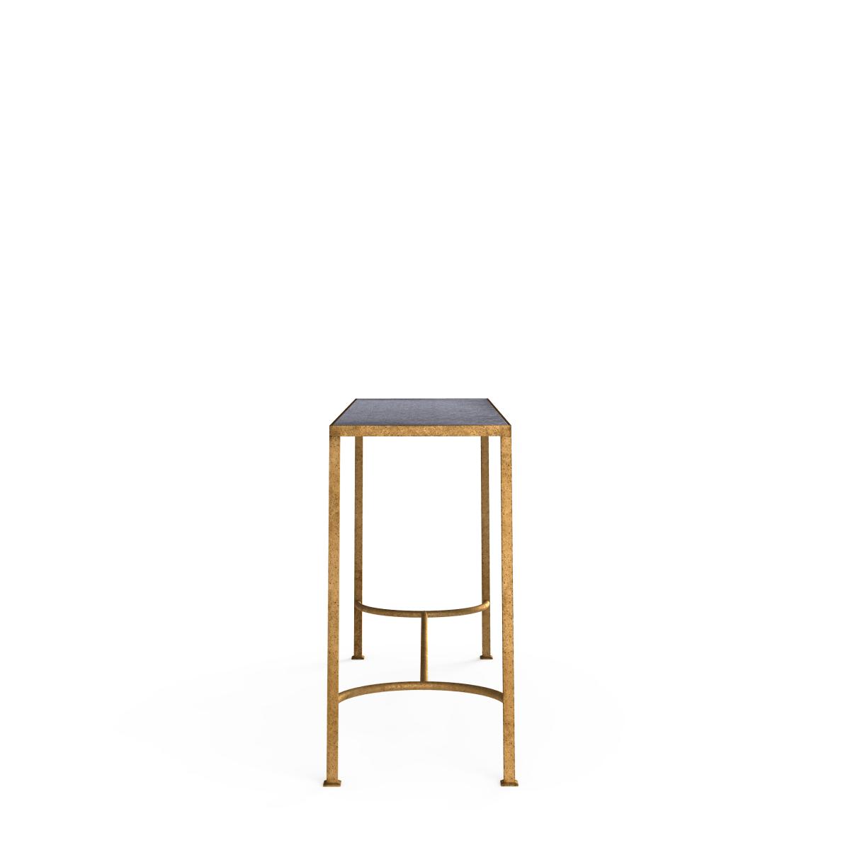 Inspired by French Art Deco and Modernist designs, the Gibbous has a slender, streamlined appearance. Its golden legs and delicate foot detail are contrasted by the dark stone top, which marry for a glamorous look. Its natural materials will result in individual characteristics from piece to piece.