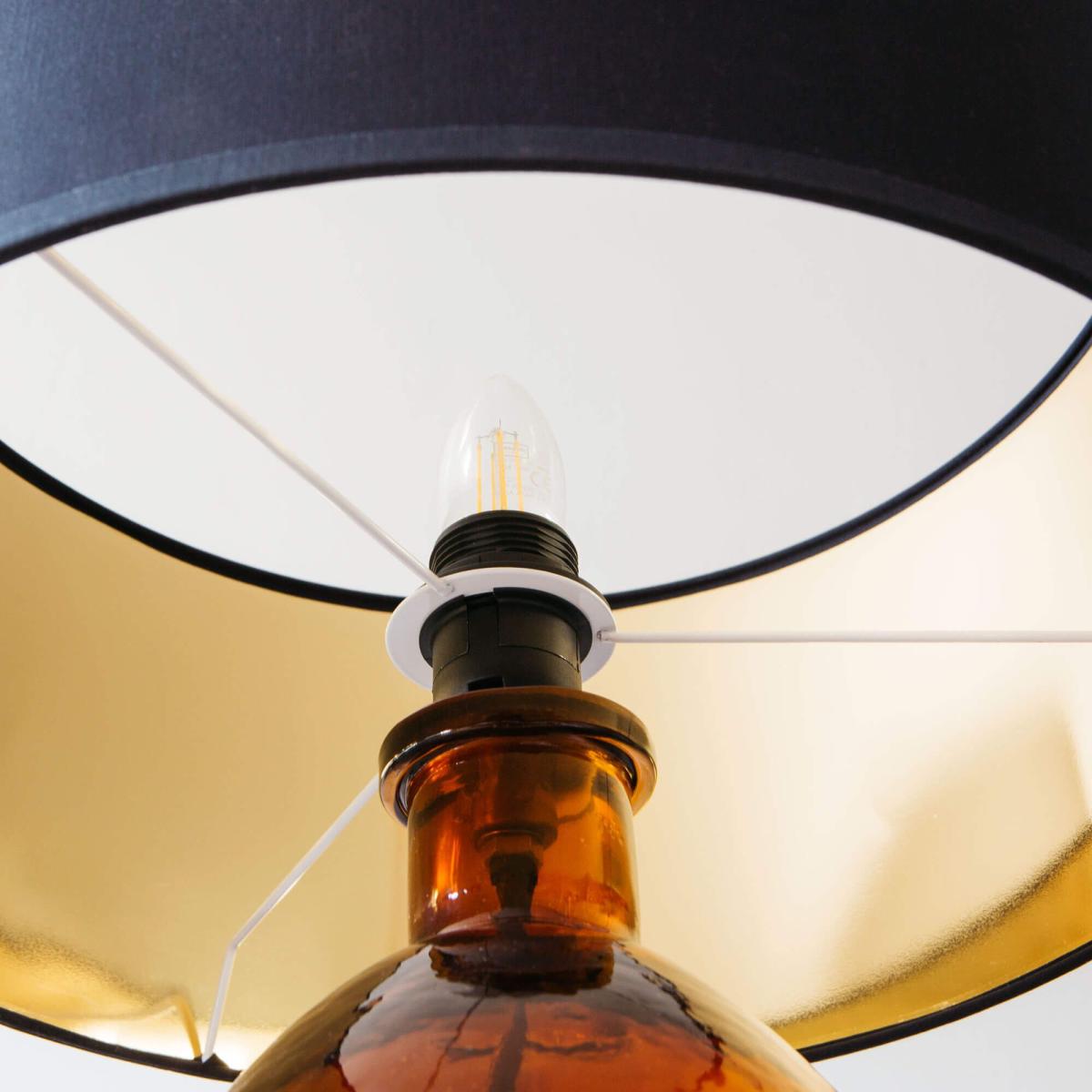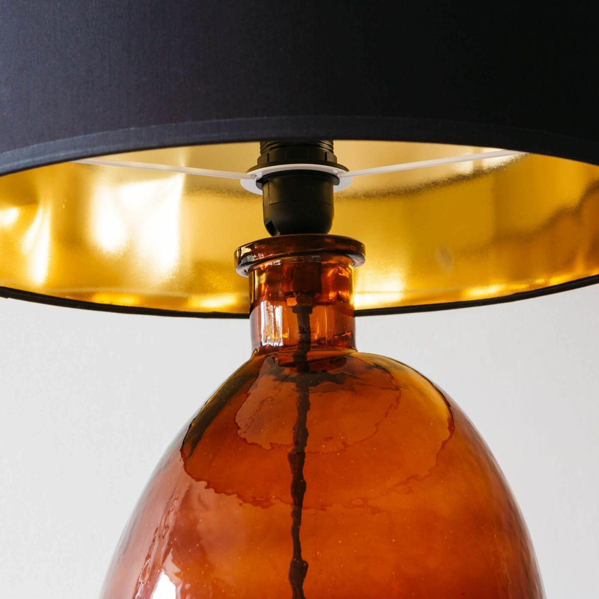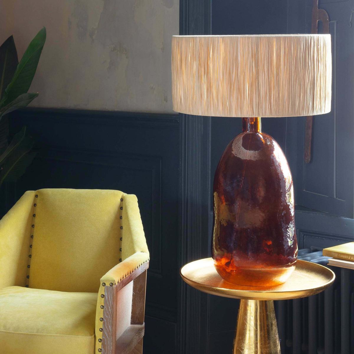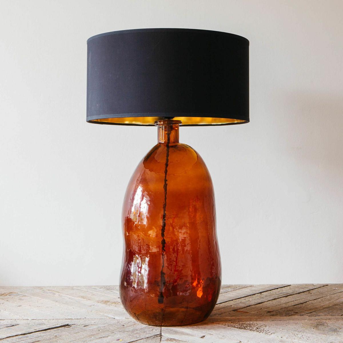 In a rich amber hue, this glass table lamp has an organic shape that curves in all the right places.