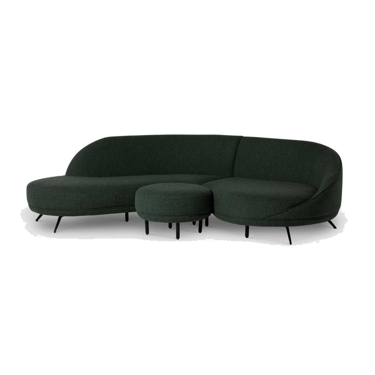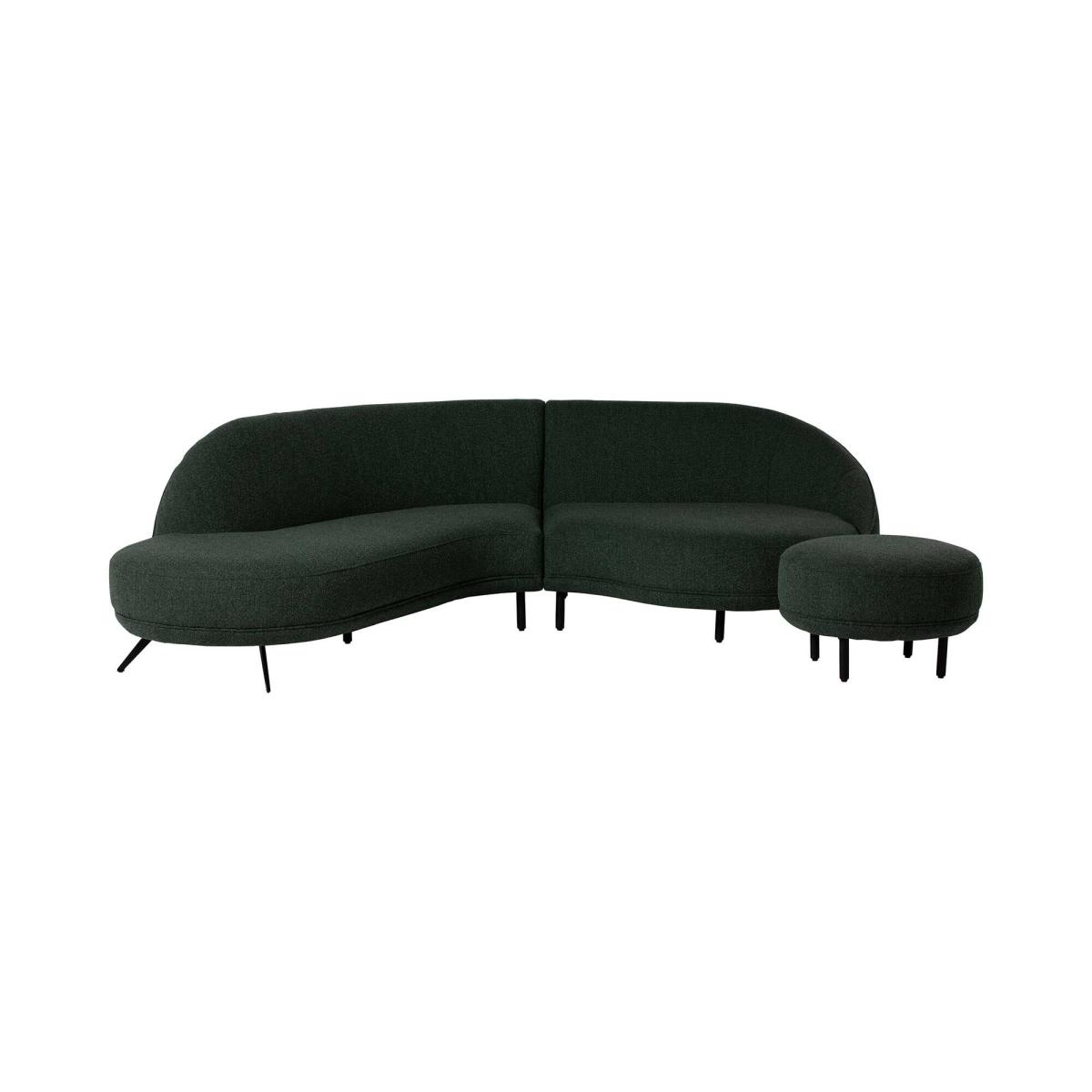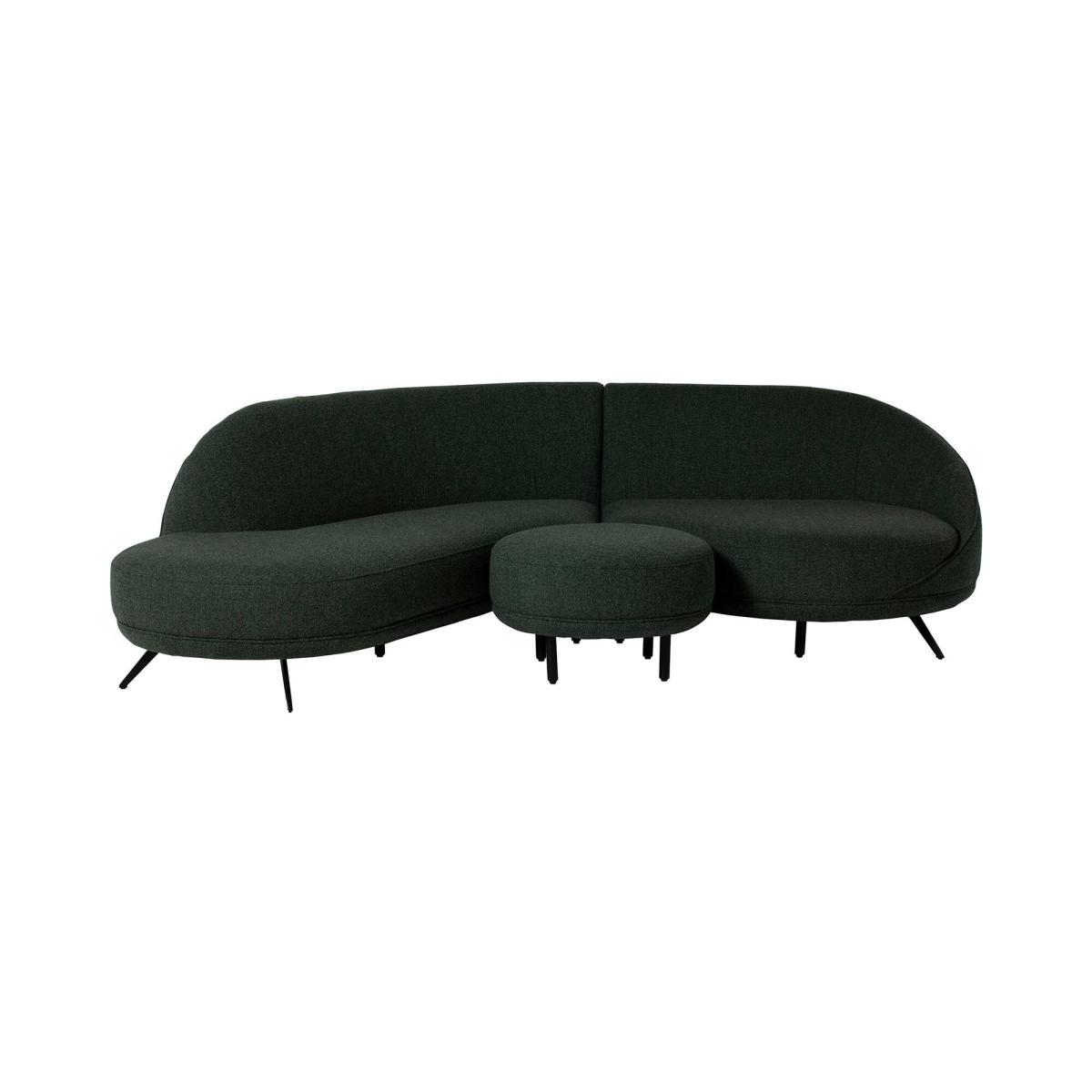 Gigi Chaise Corner Sofa Left & Round Ottoman, Green Fabric | Barker & Stonehouse