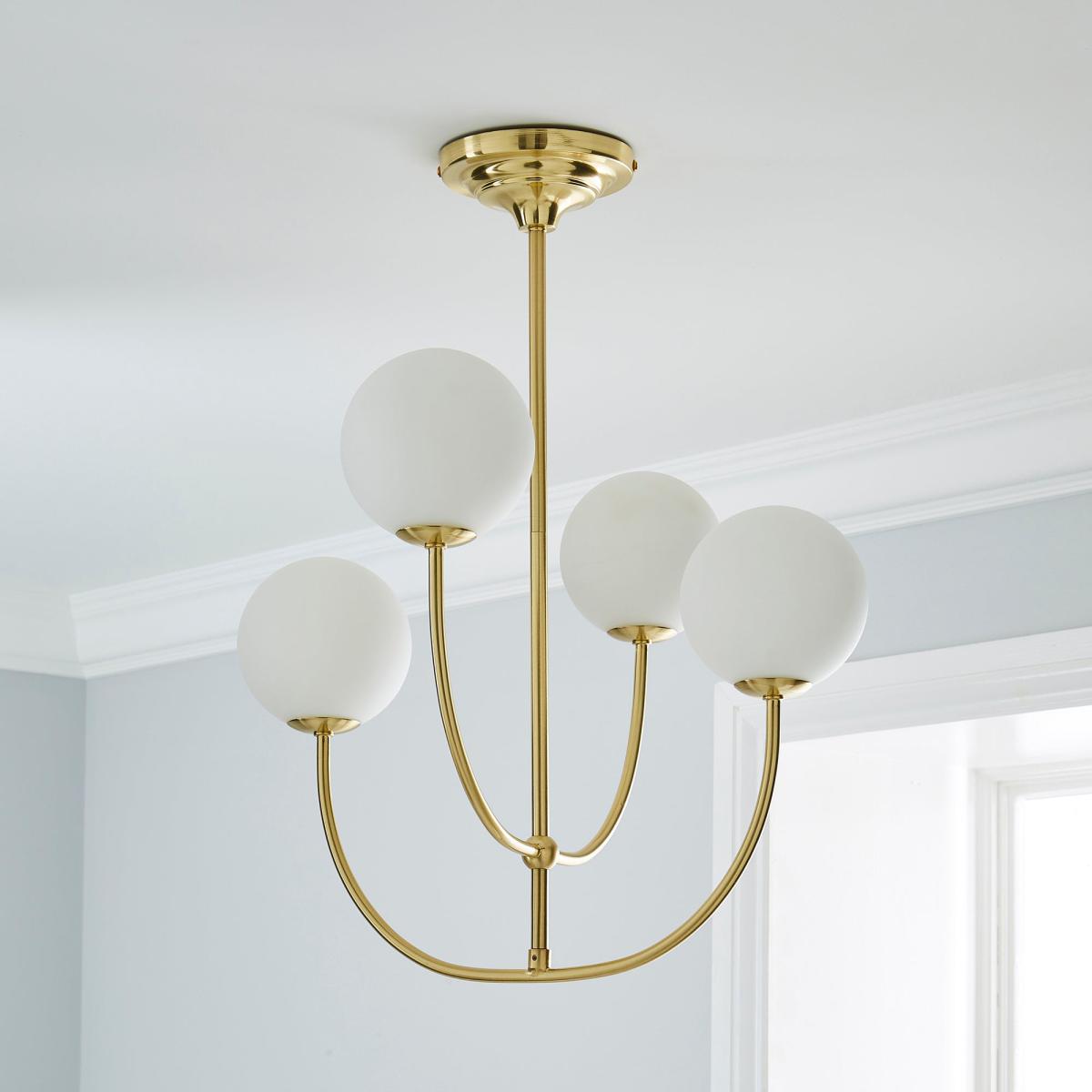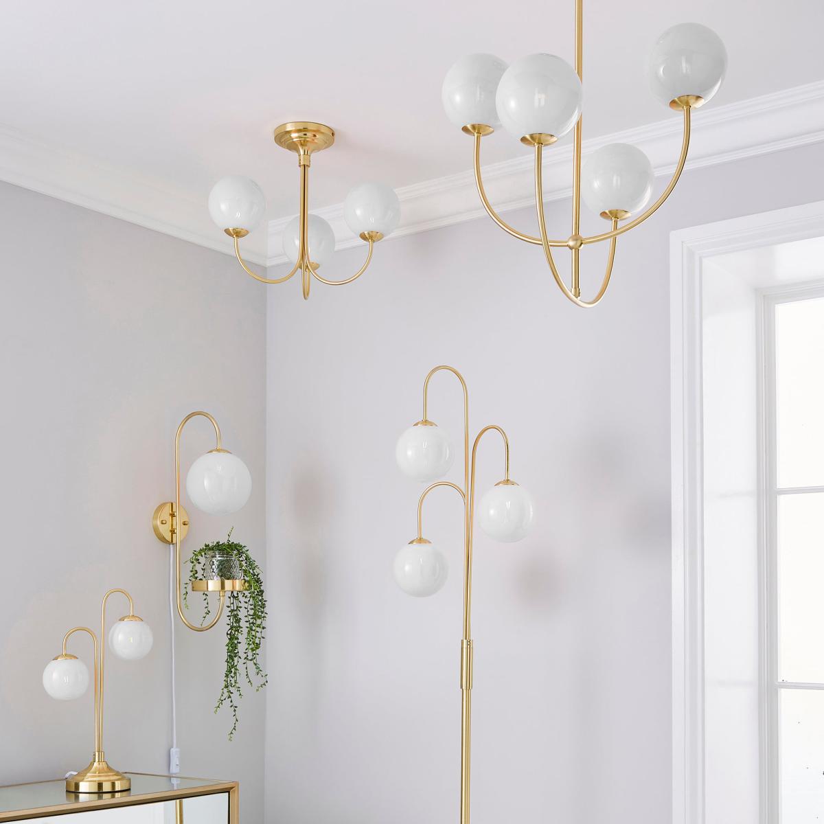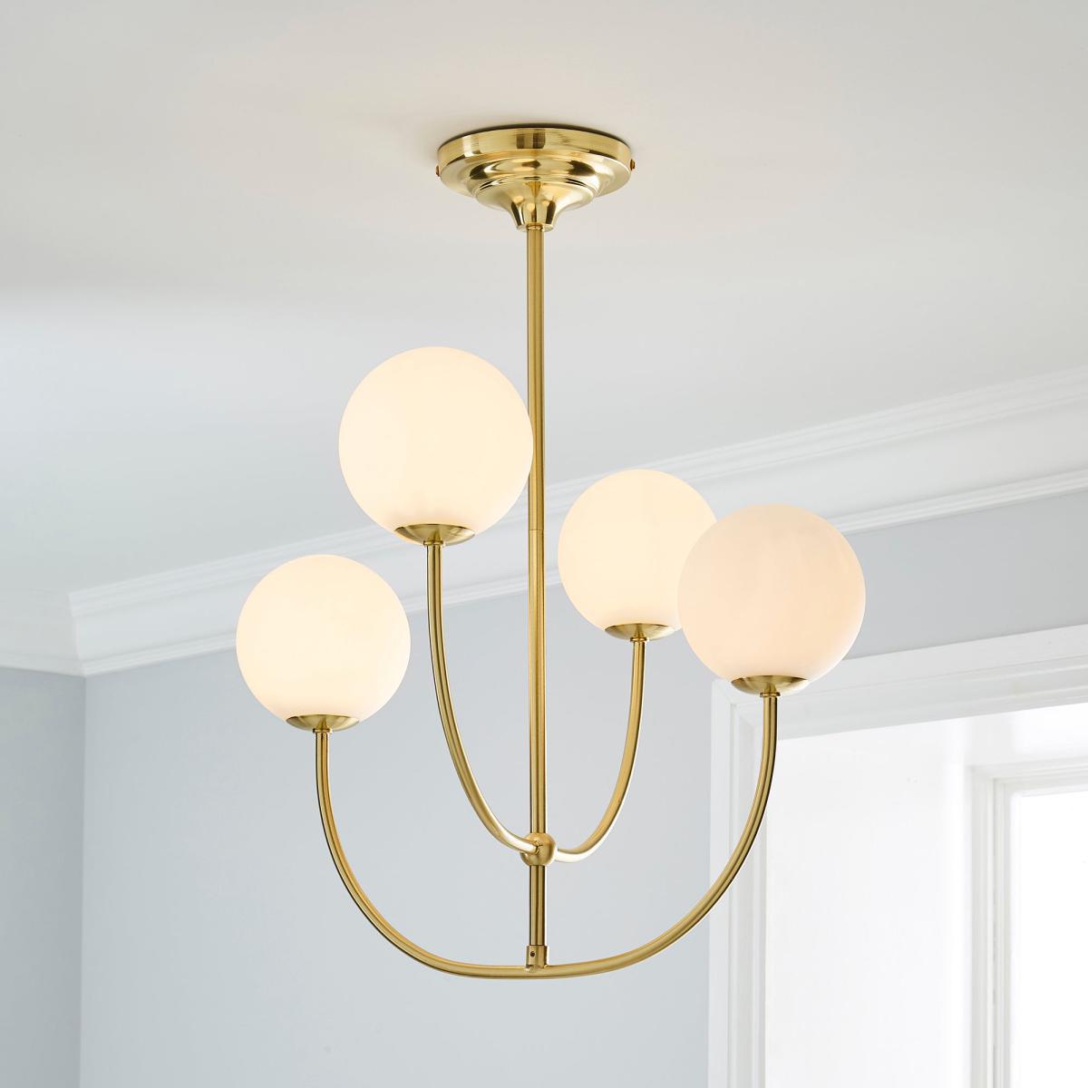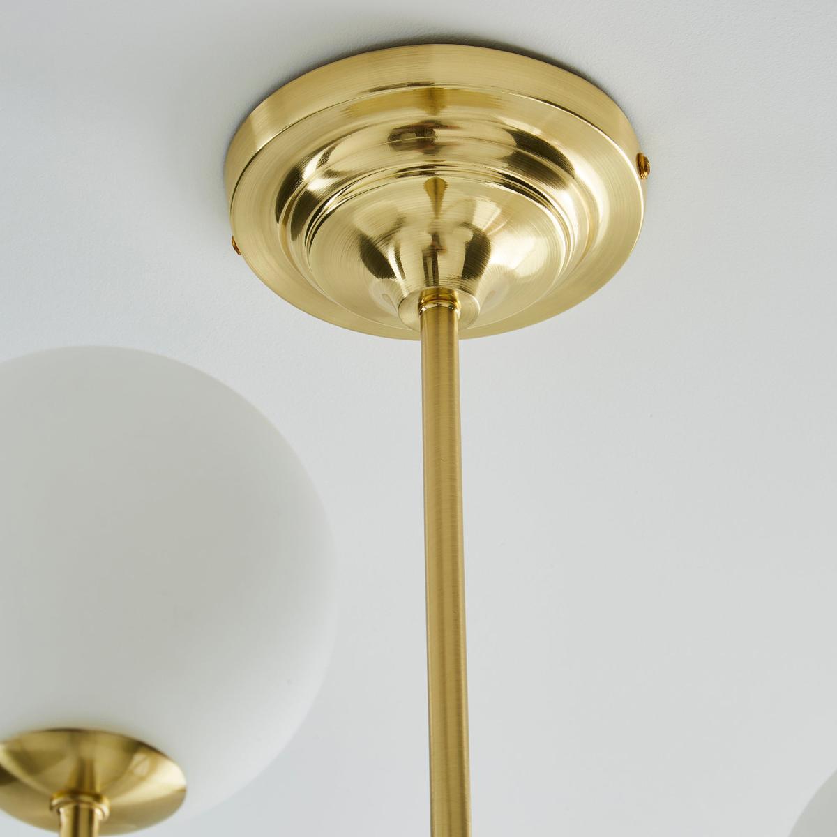 I love this ceiling fitment because its sleek, contemporary design makes it versatile enough to suit a variety of interiors. The white shades combined with a subtle brass finish give it a timeless, elegant look that works particularly well in modern, minimalist, or Scandinavian-style spaces. For practical styling tips, consider pairing it with neutral or pastel colour schemes to keep the space light and airy, or use it as a statement piece in a more subdued room to add visual interest. Its soft, diffuse lighting helps create a cosy, inviting atmosphere without overwhelming the room, making it suitable for living rooms, dining areas, or even bedrooms.